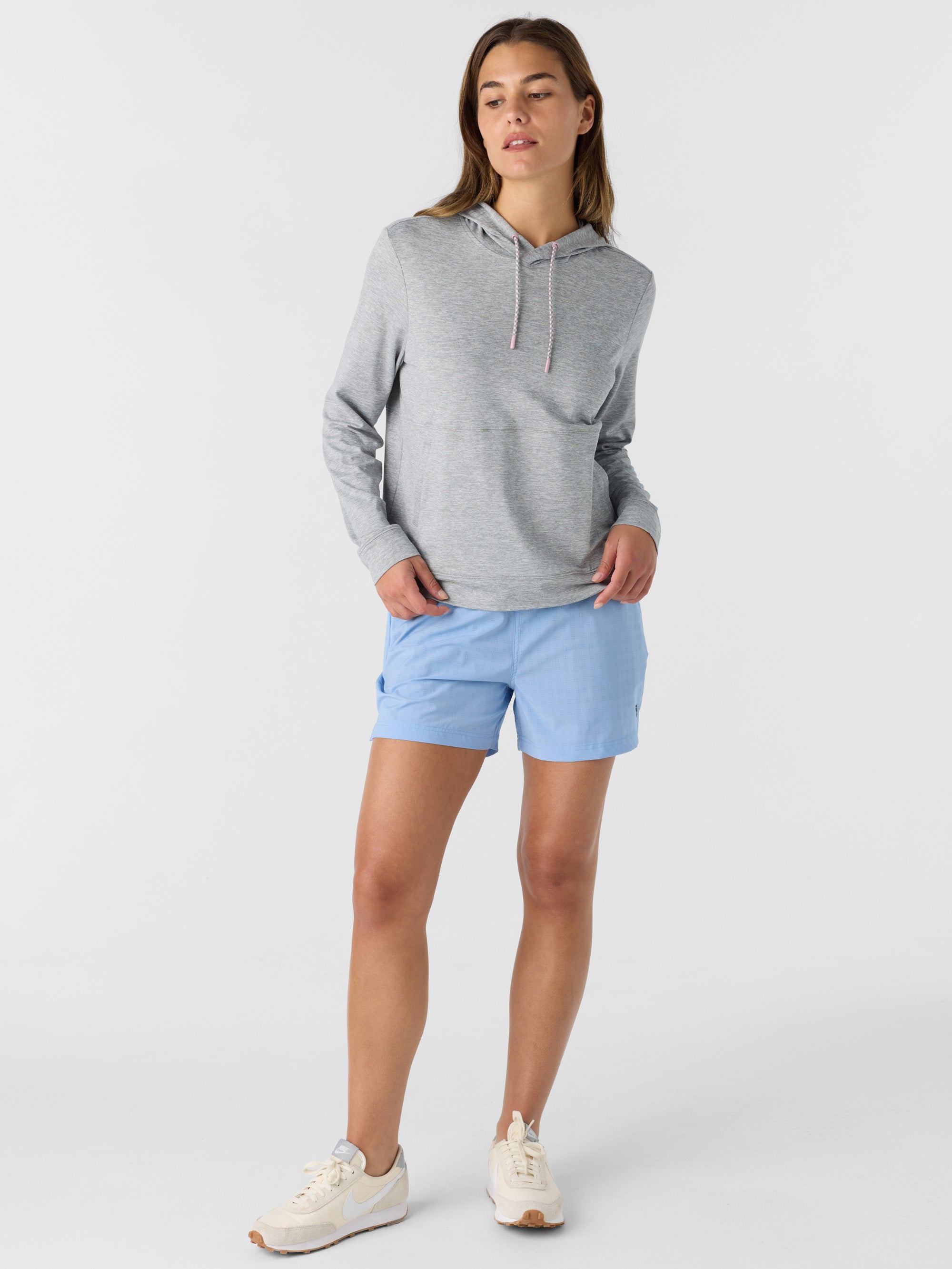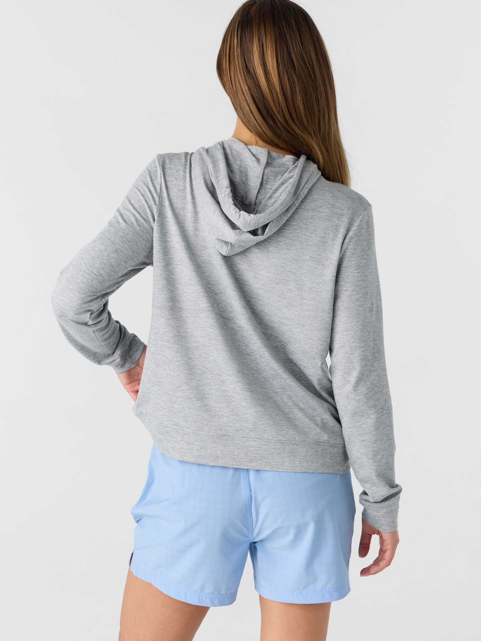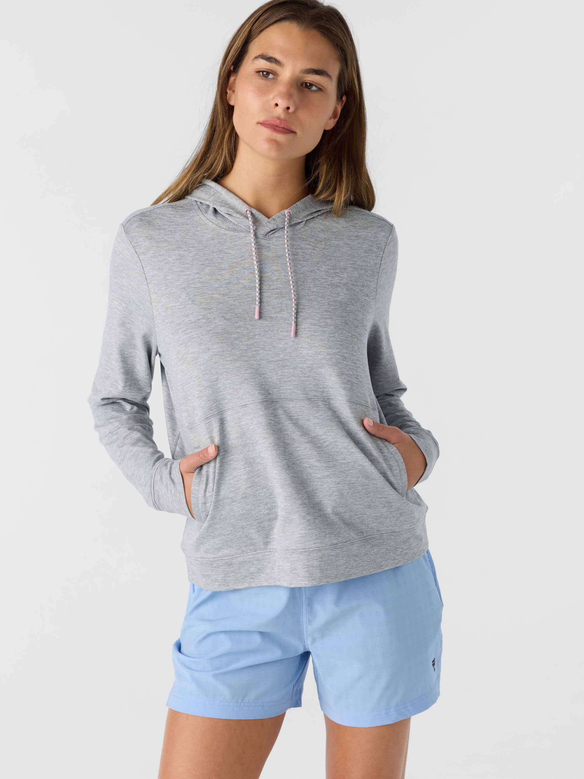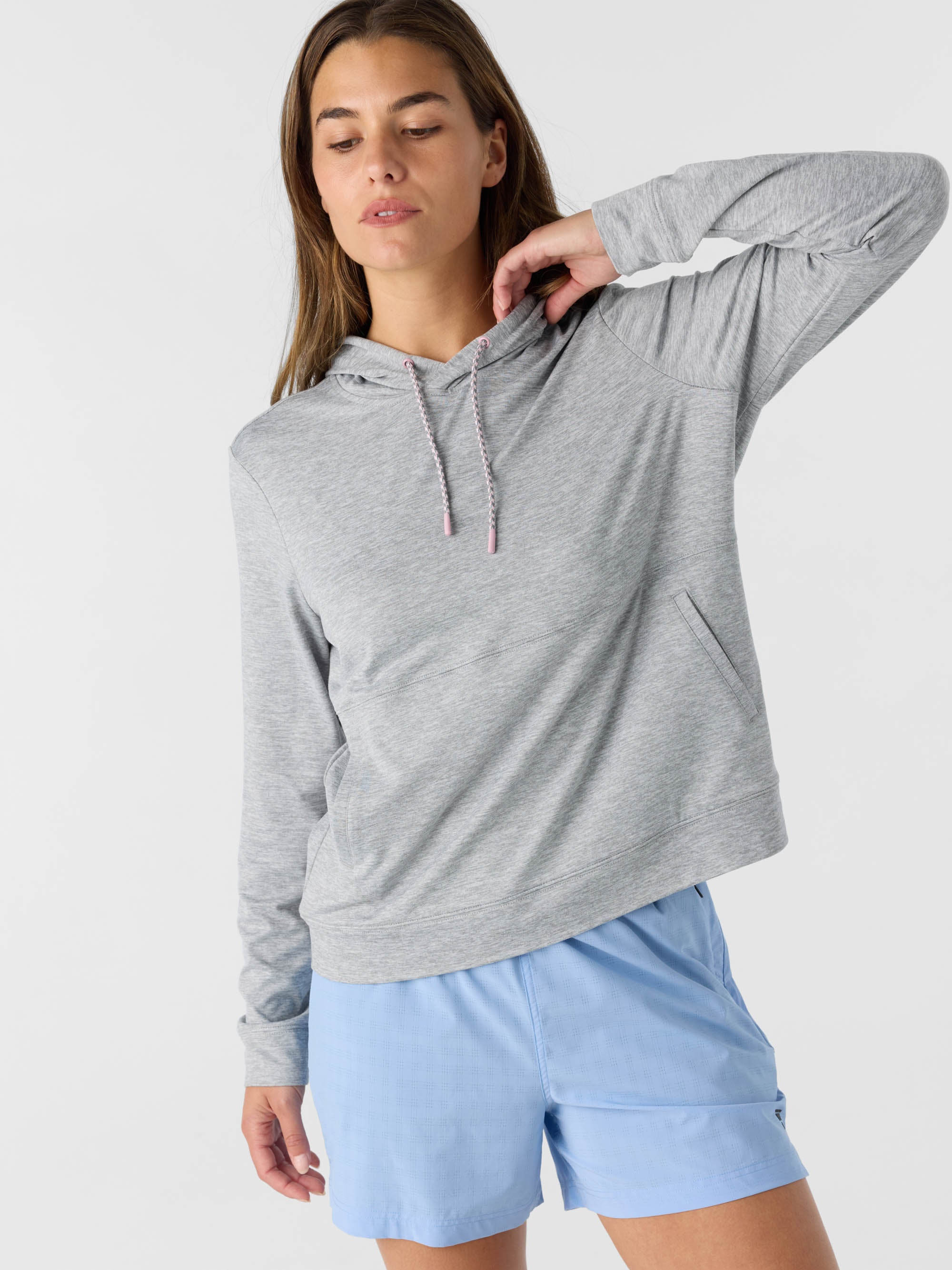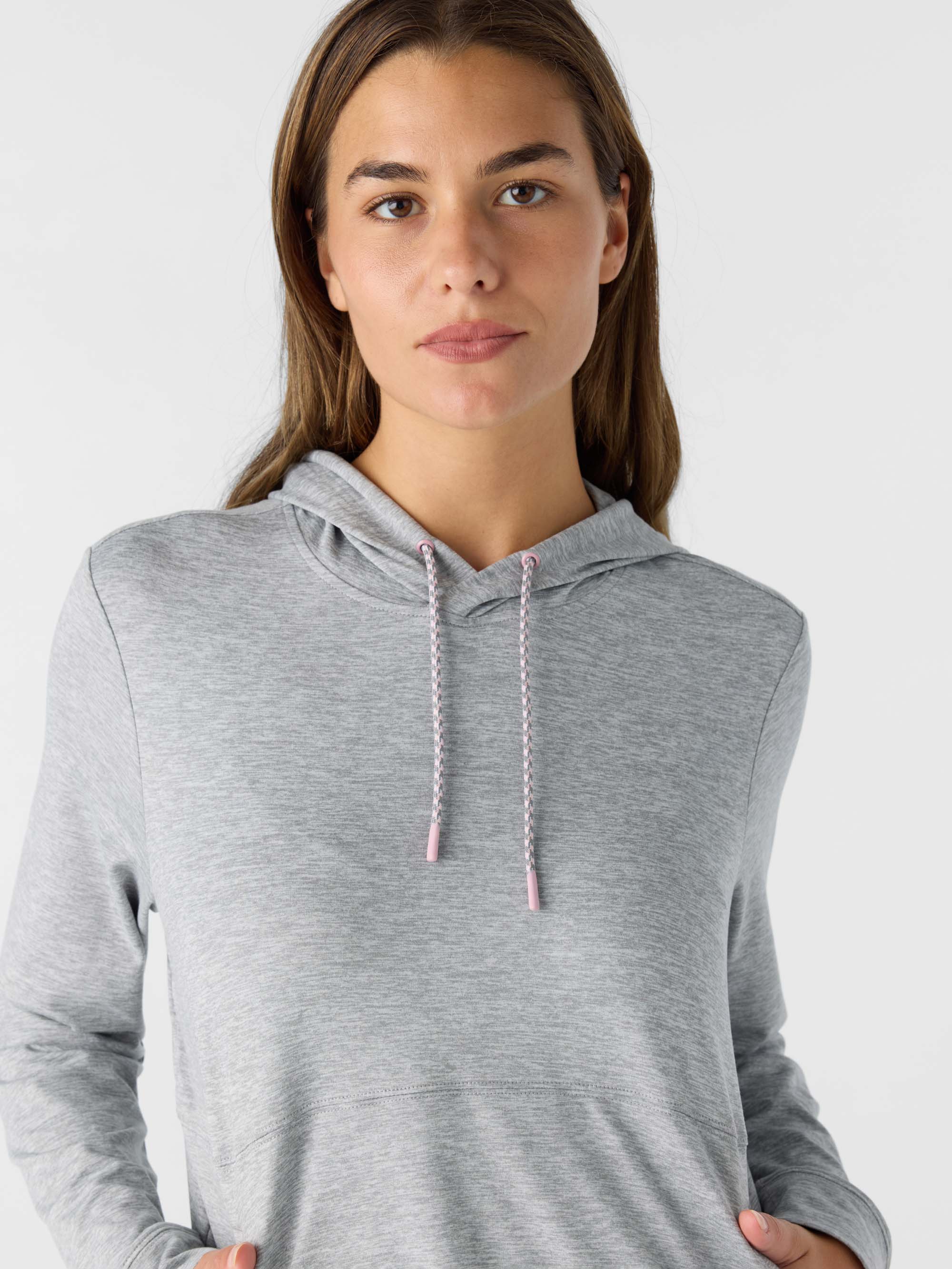 Super comfortable hoodie that's perfect for working out or casual wear. It features stretch fabrication, a lightweight fabric feel and solid color wash.