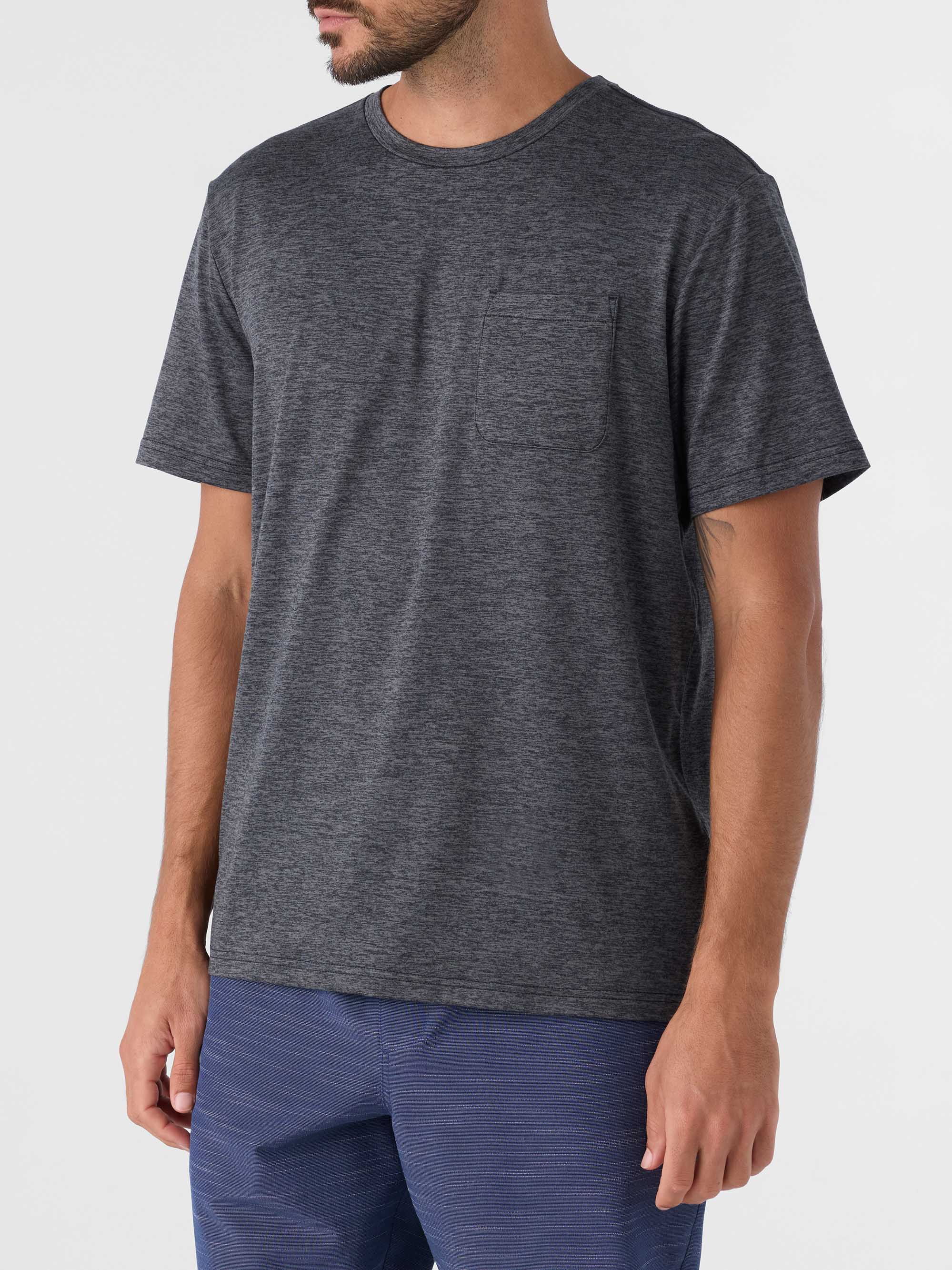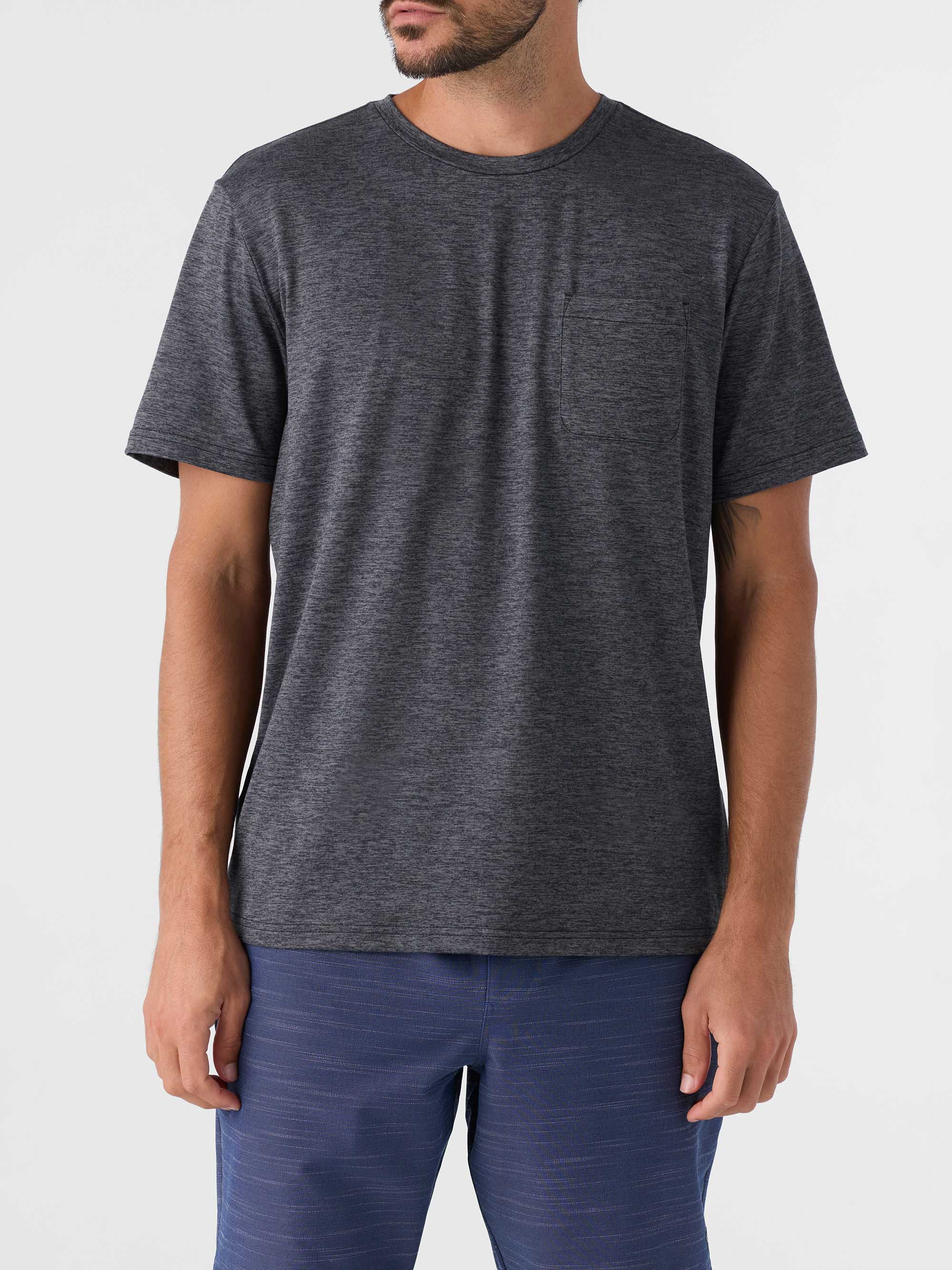 A performance knit t-shirt that's perfect for hiking, working out or wearing around town. It features stretch fabrication, moisture wicking properties and UPF 50+ sun protection. The standard fit is relaxed in the body and sleeves.