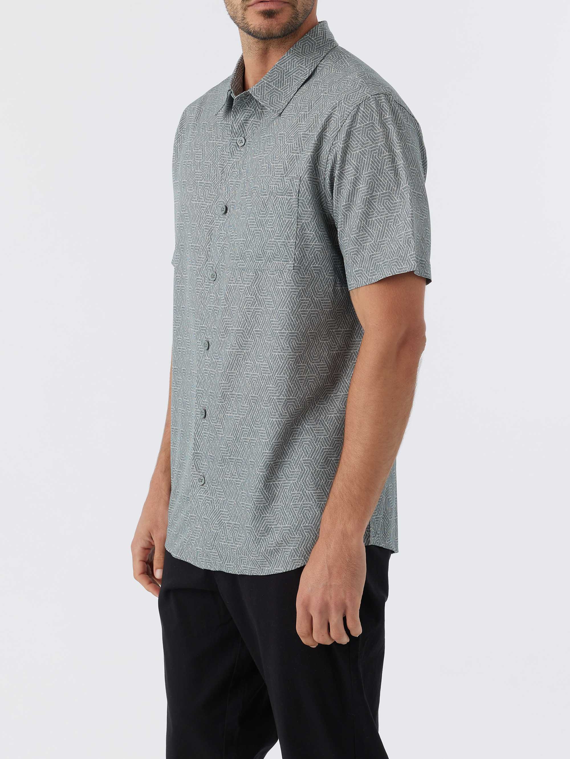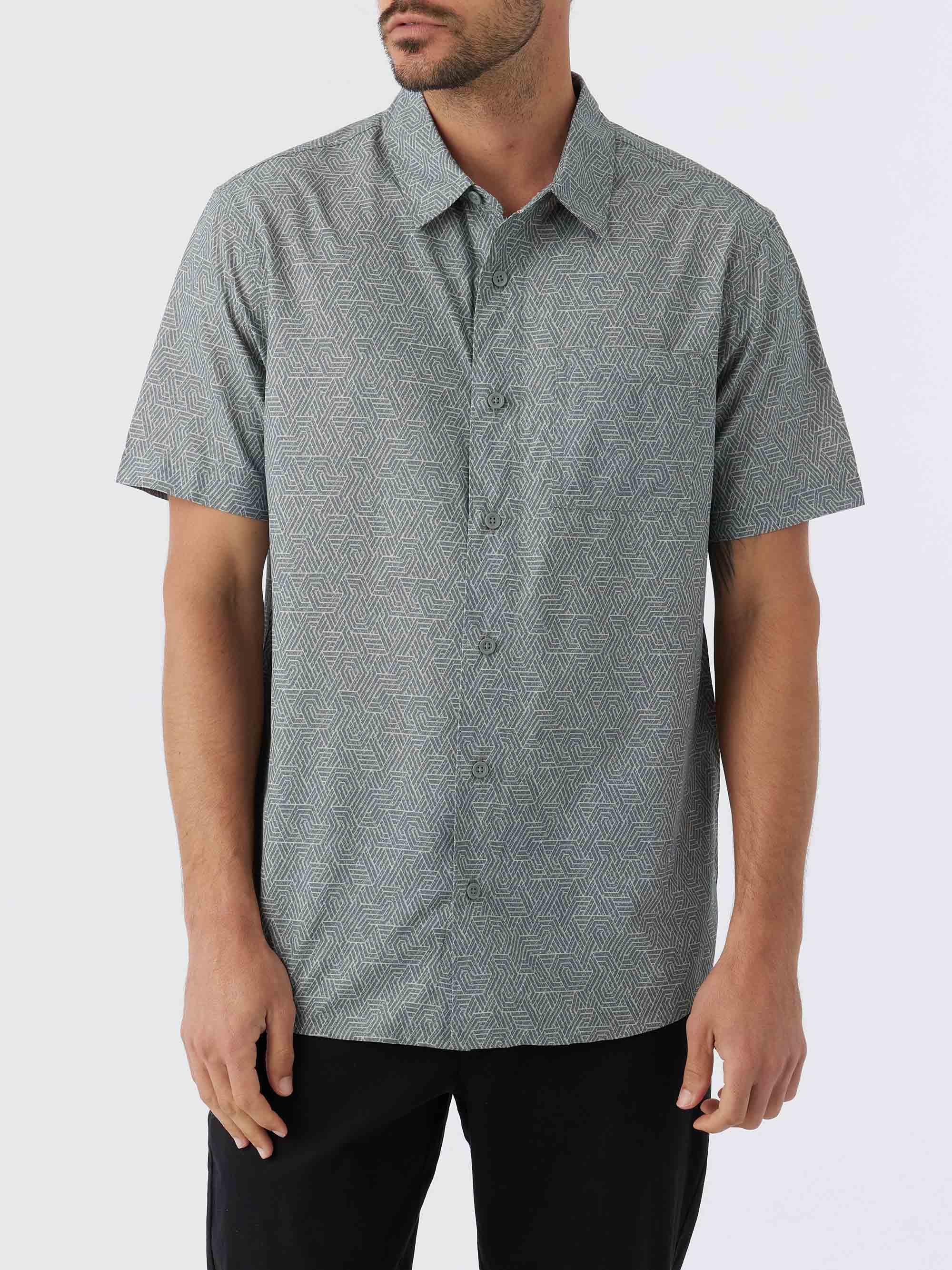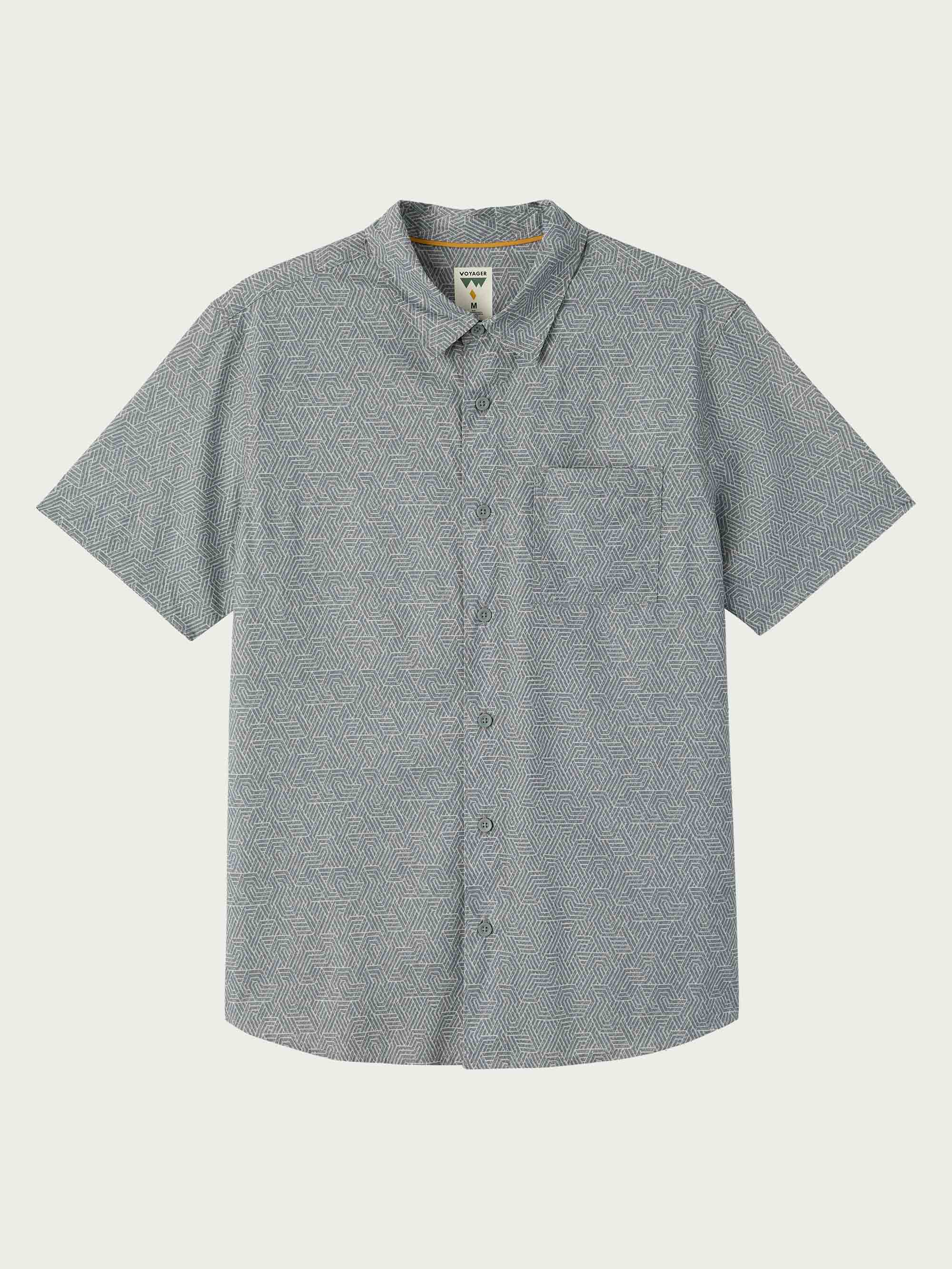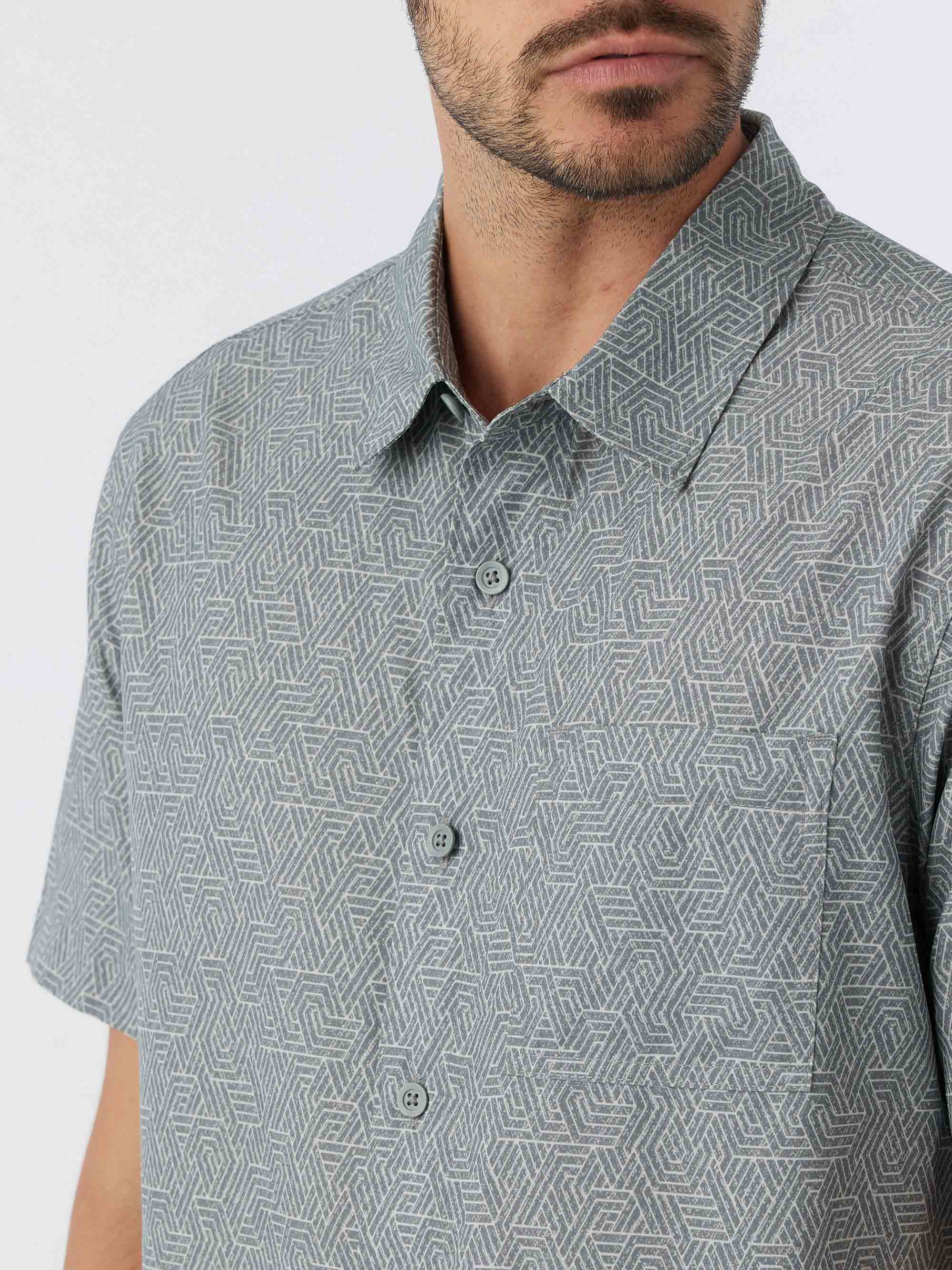 A casual button-up shirt that's ready for your next hike or barbecue. It features a front button design, added stretch fabrication and fits relaxed in the body and sleeves. This product is made with recycled materials.