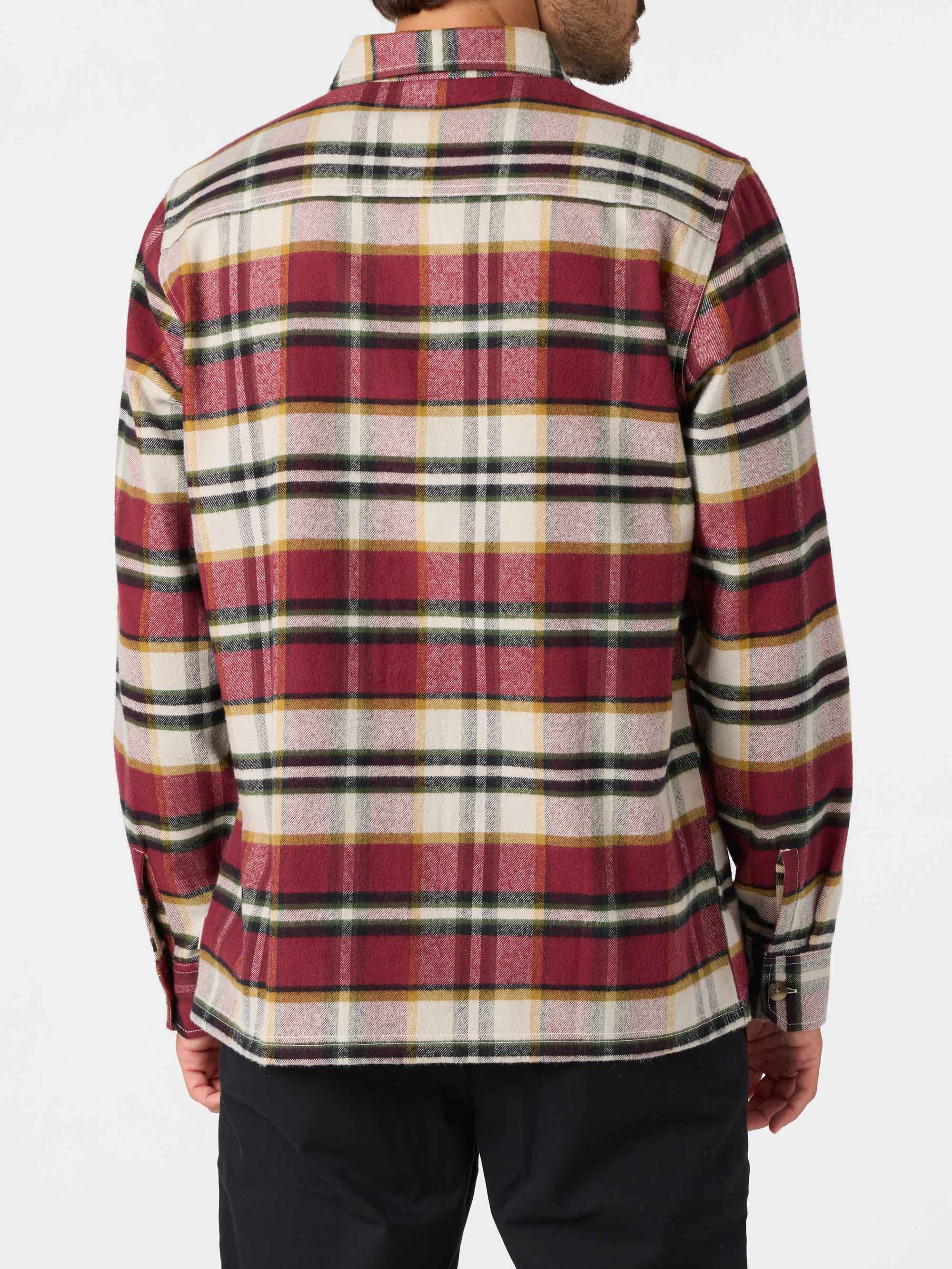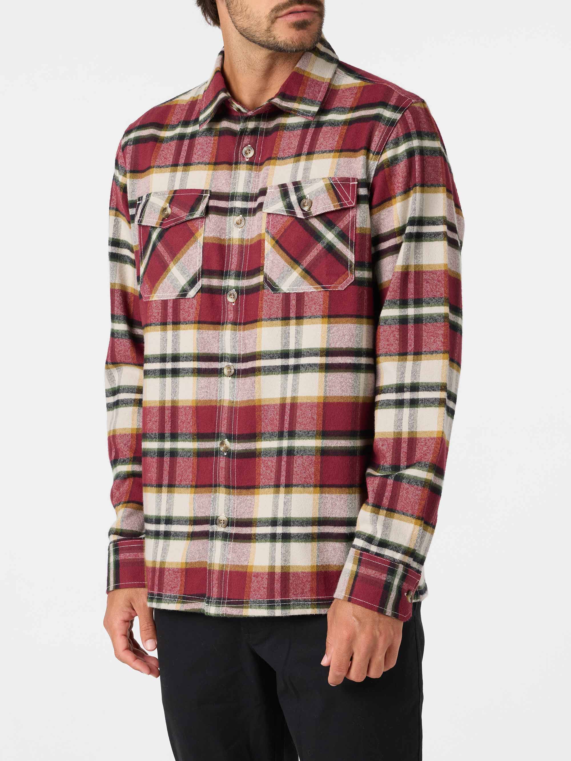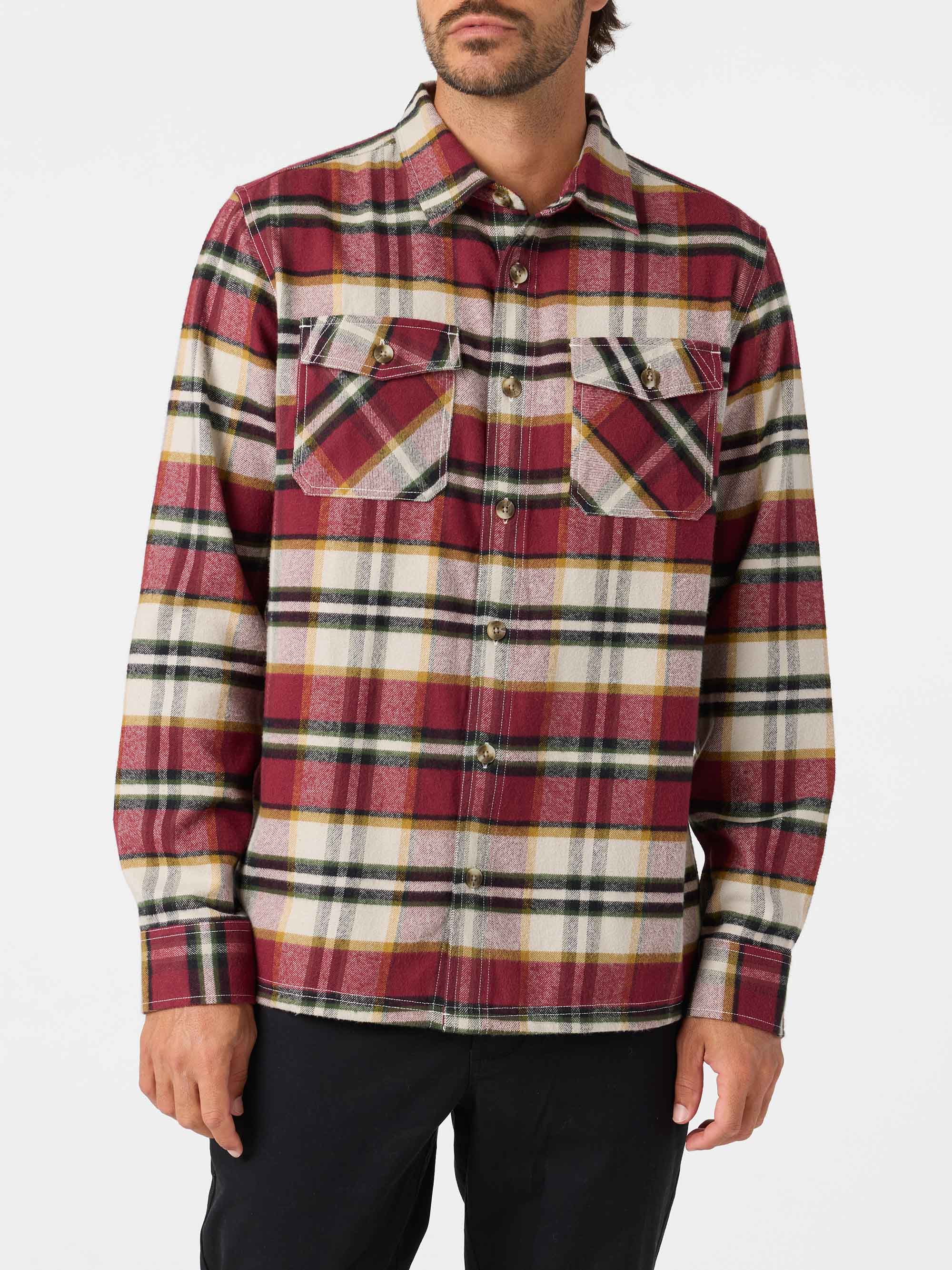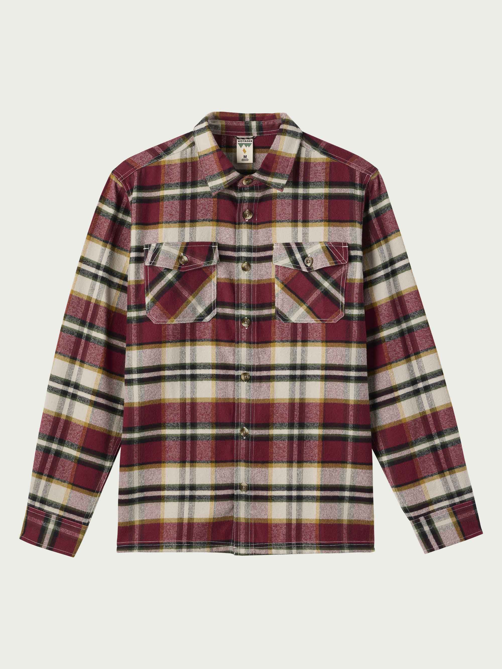 A heavier flannel button-up shirt to keep the heat in and the cold out. It has a front button design, premium cotton blend feel and fits relaxed in the body and sleeves.