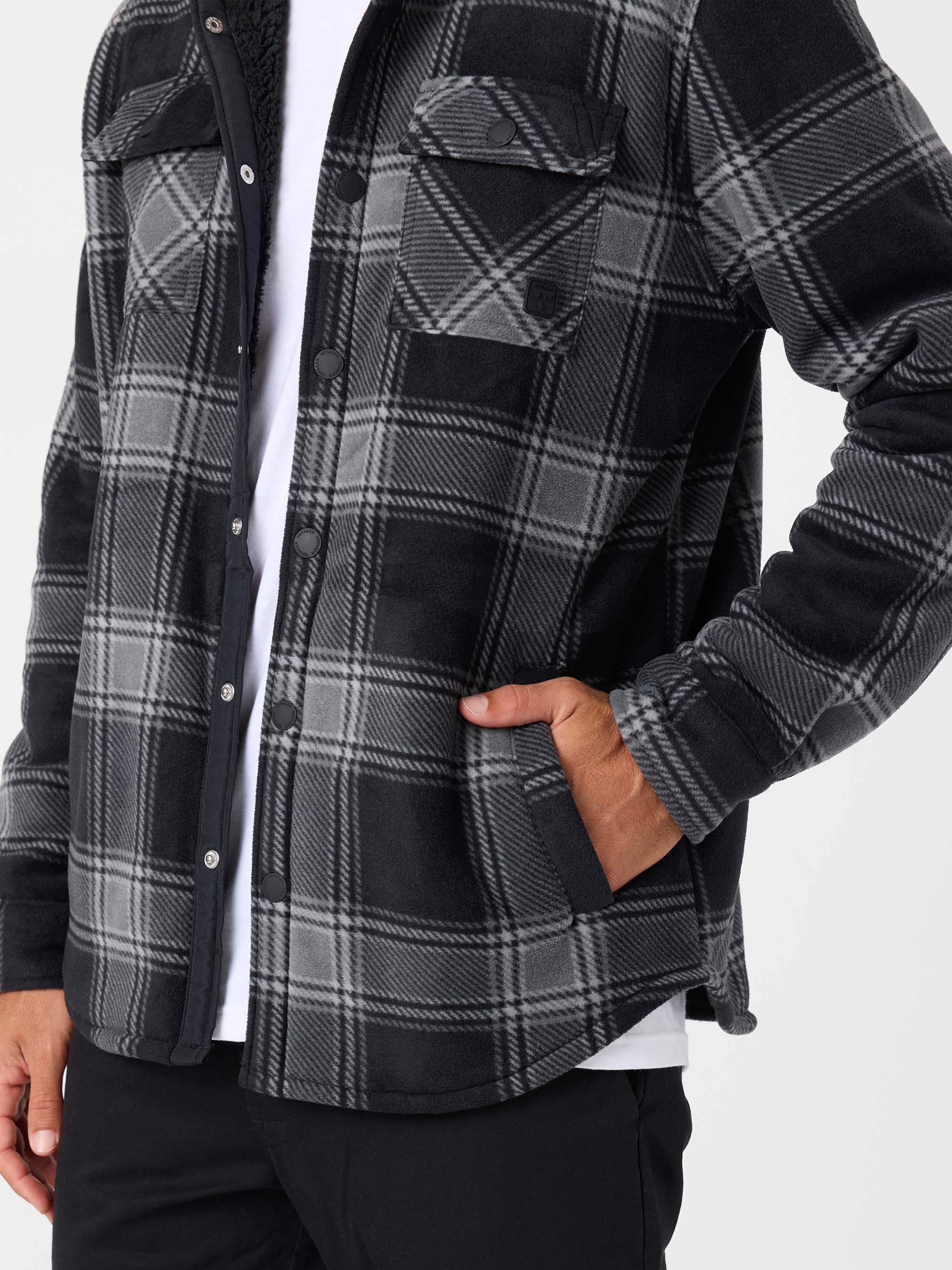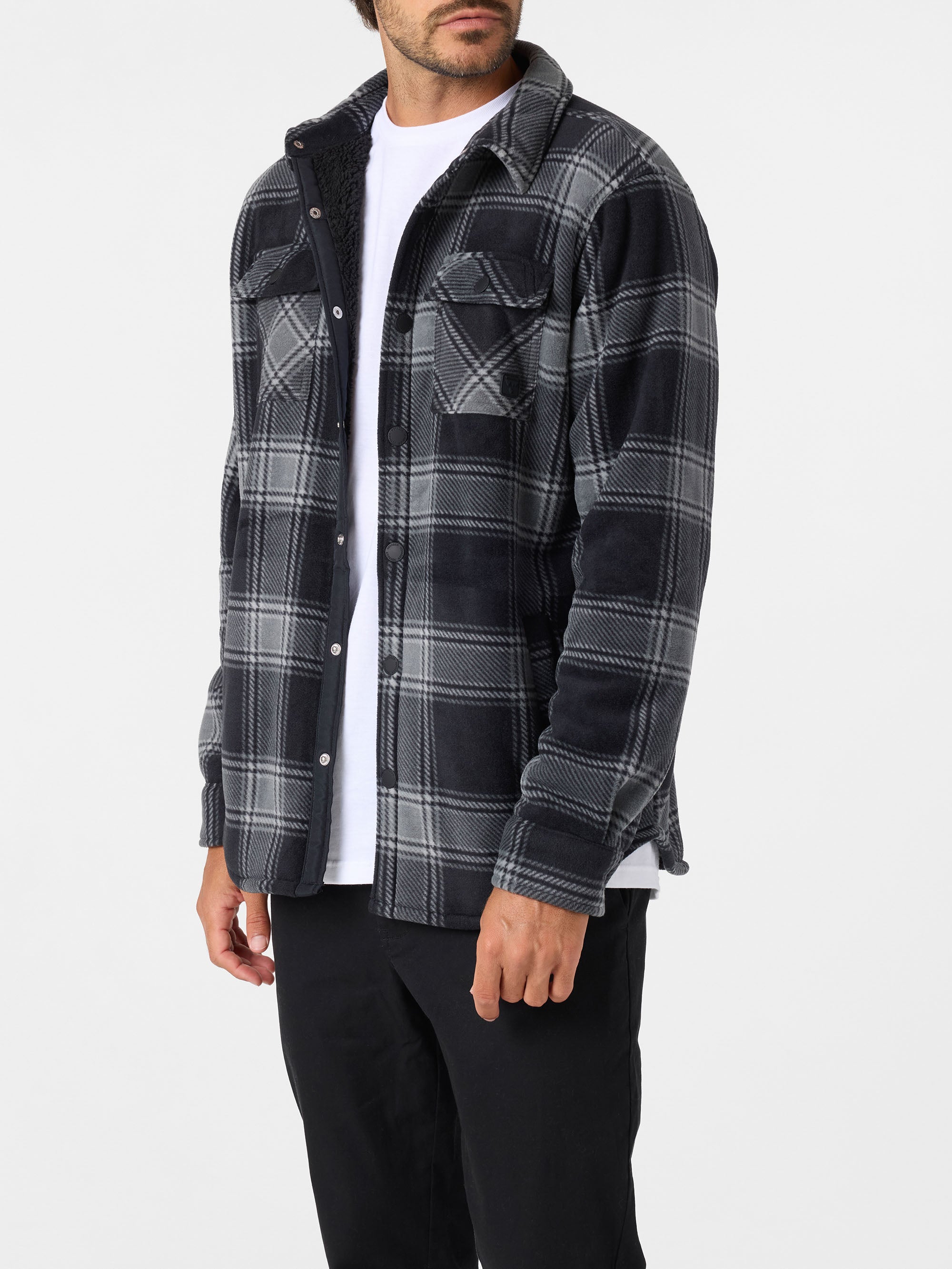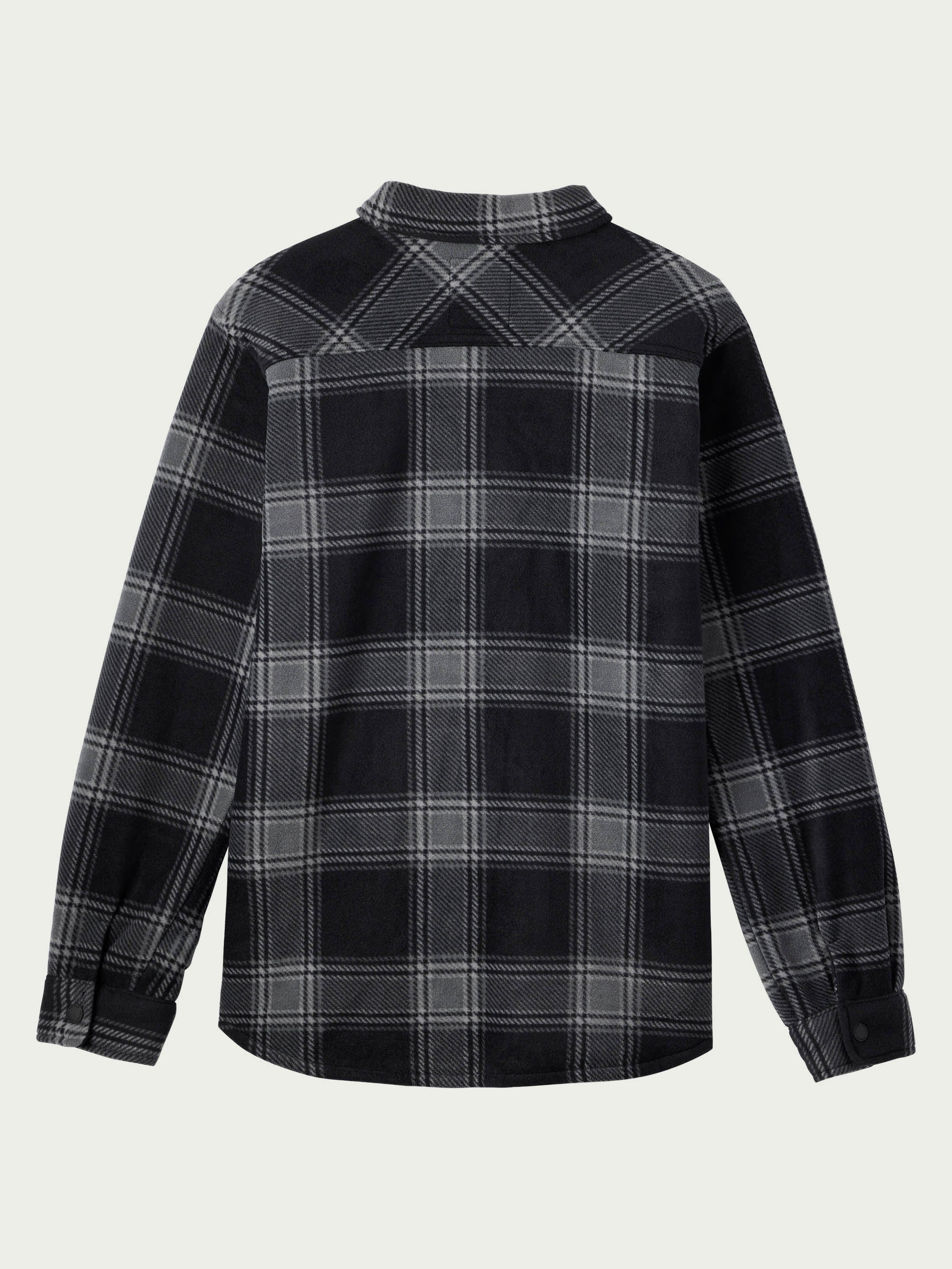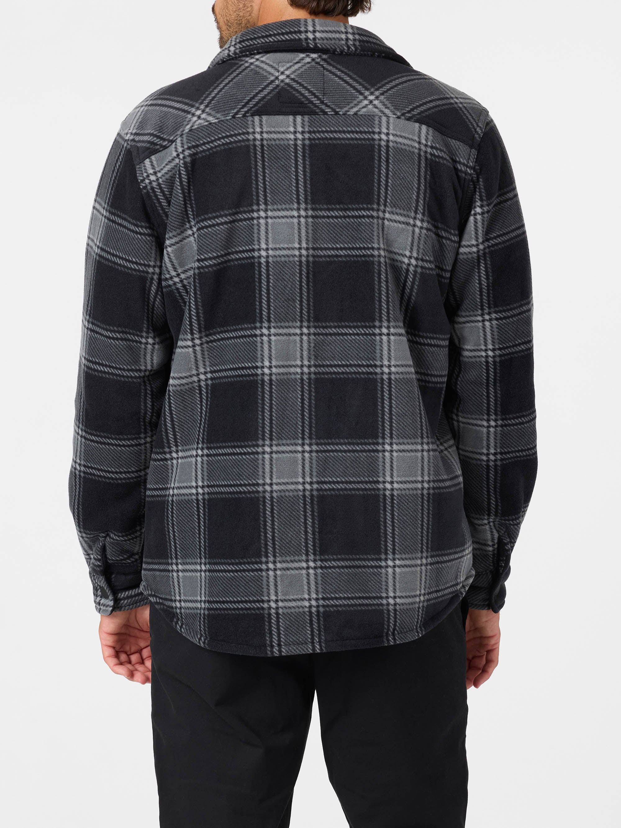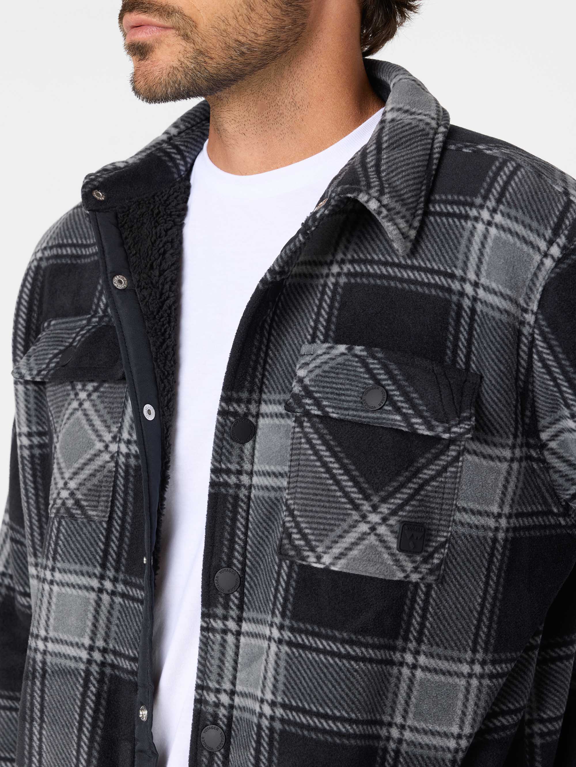Keep the heat in and the cold out. This fleece button-up is high pile lined, has a front snap closure and relaxed fit.