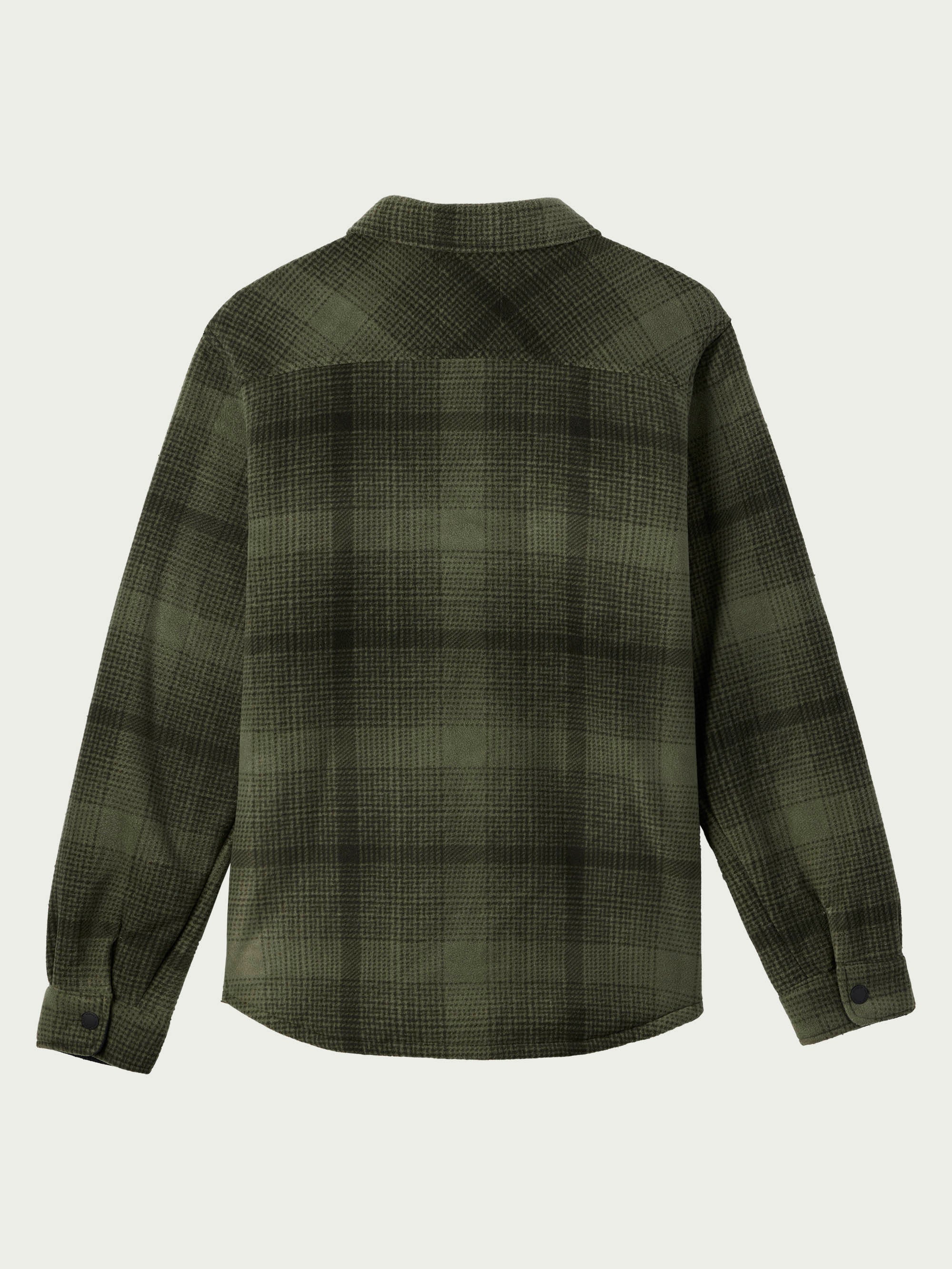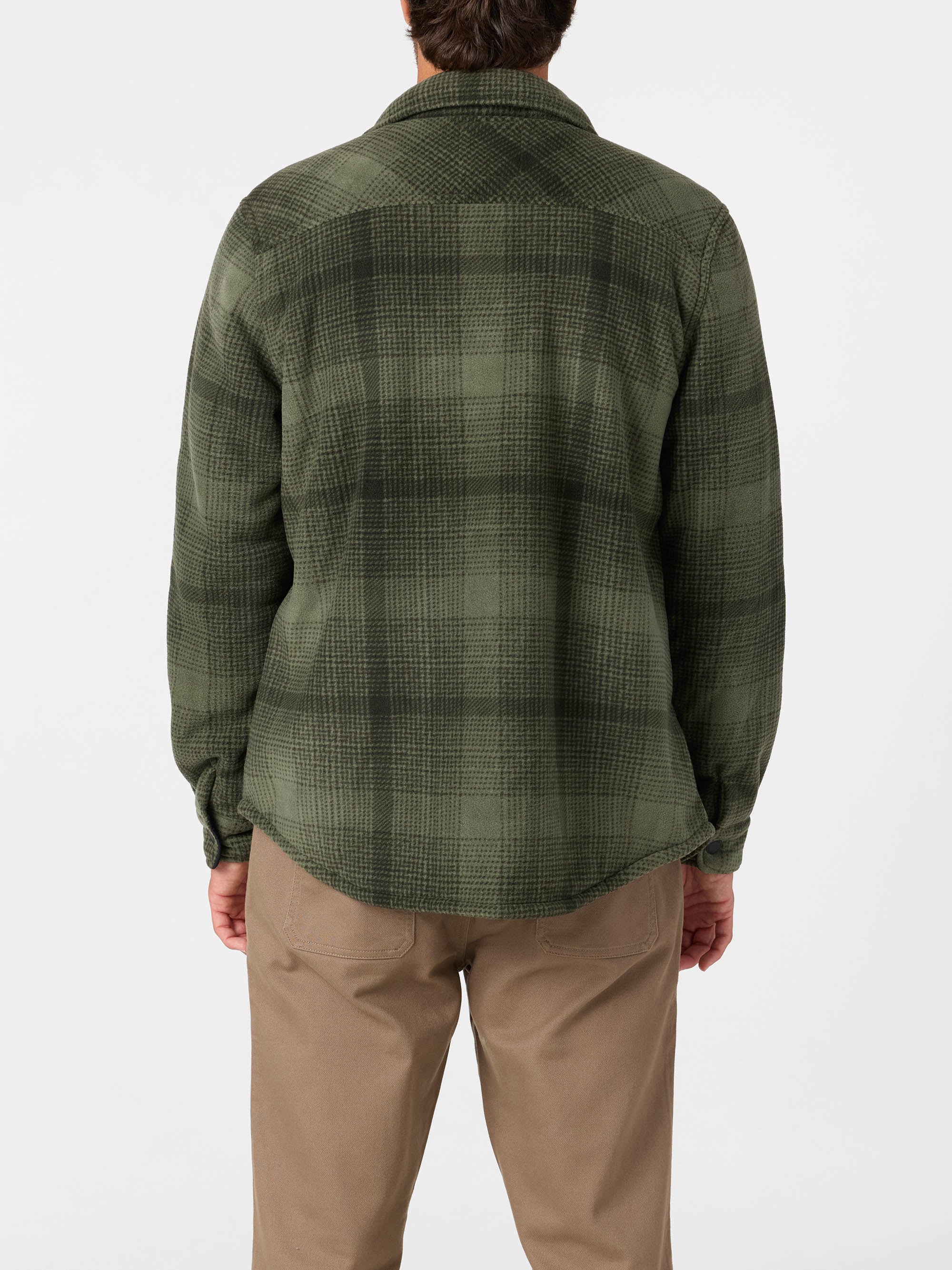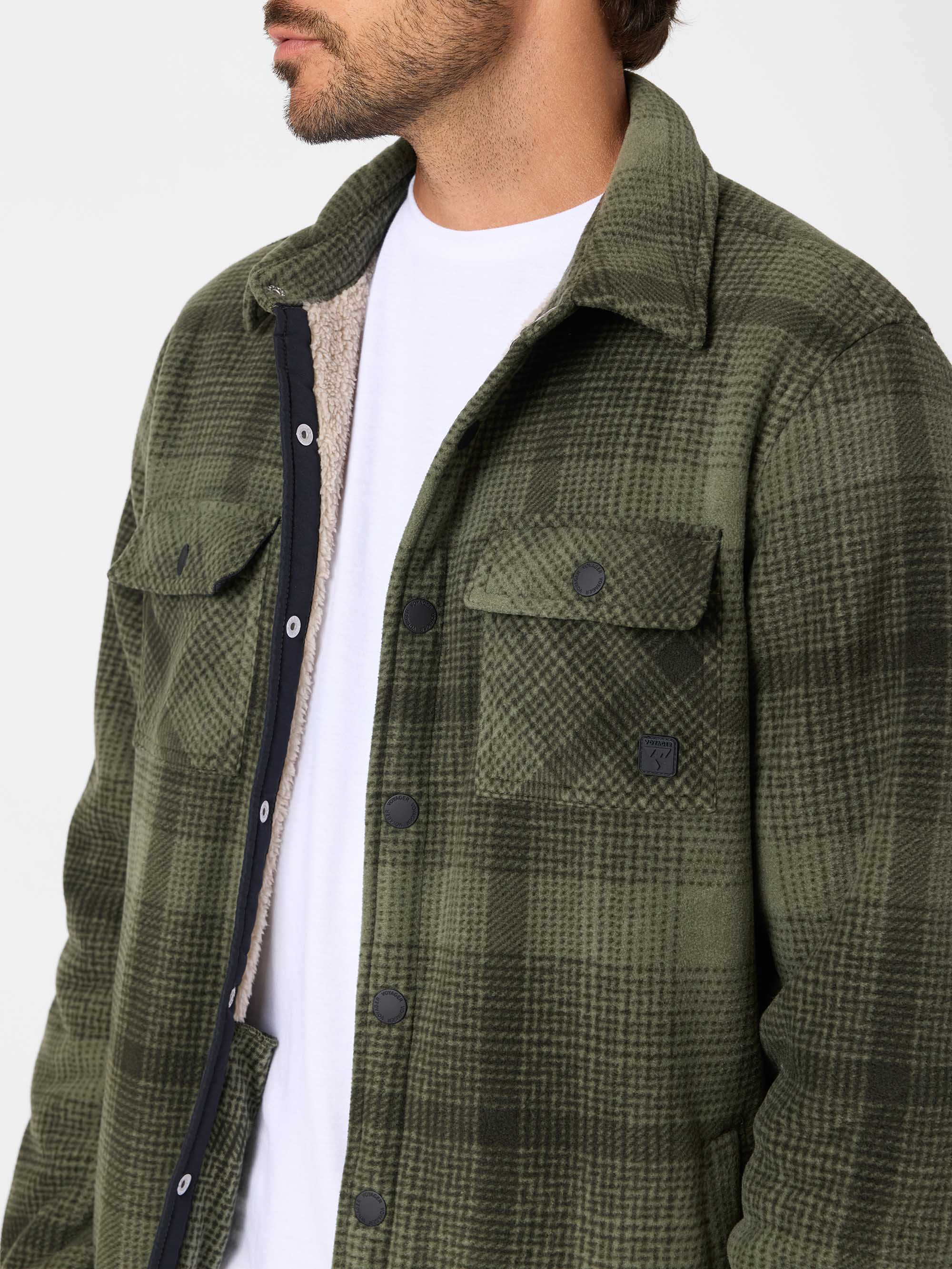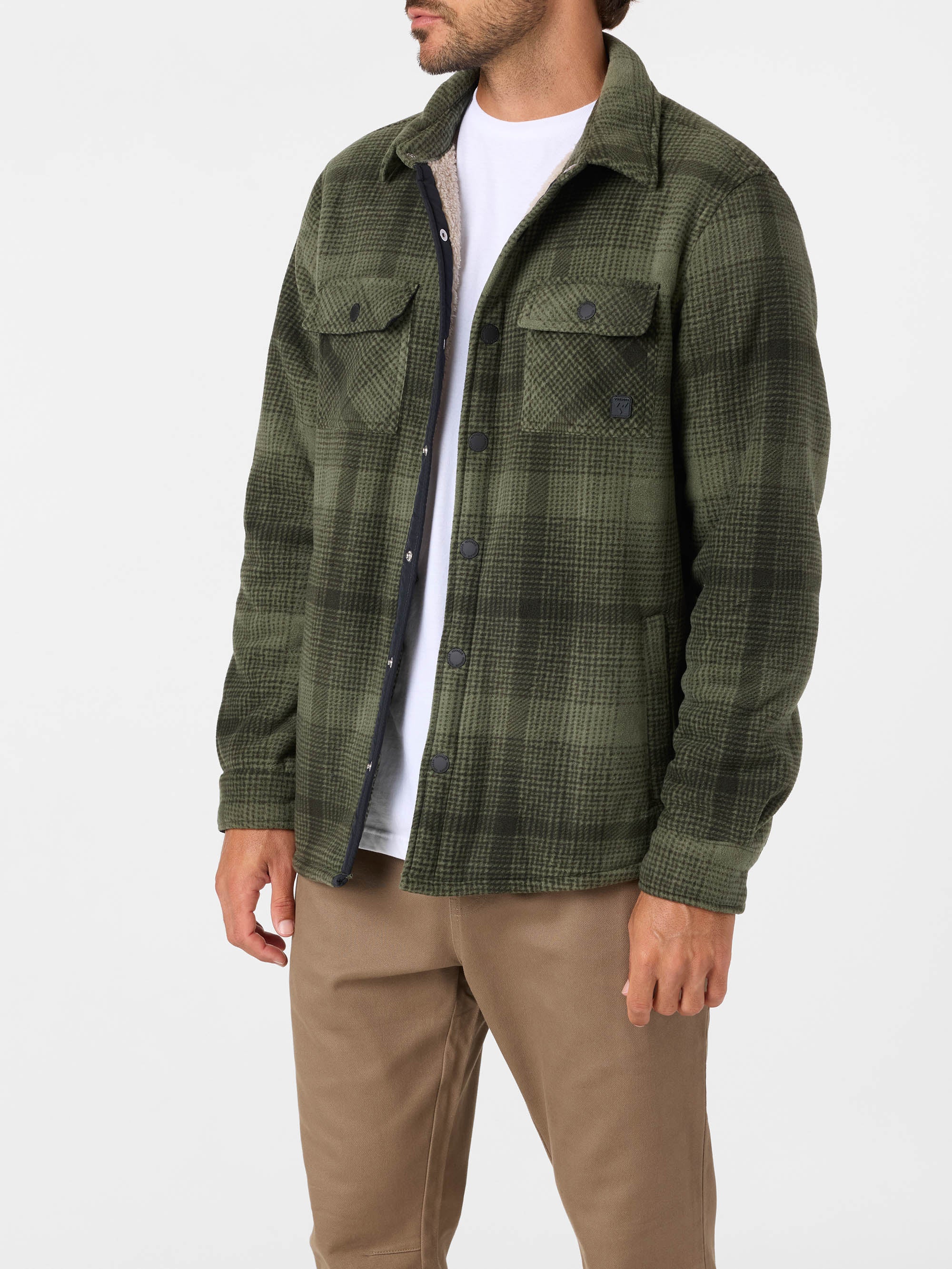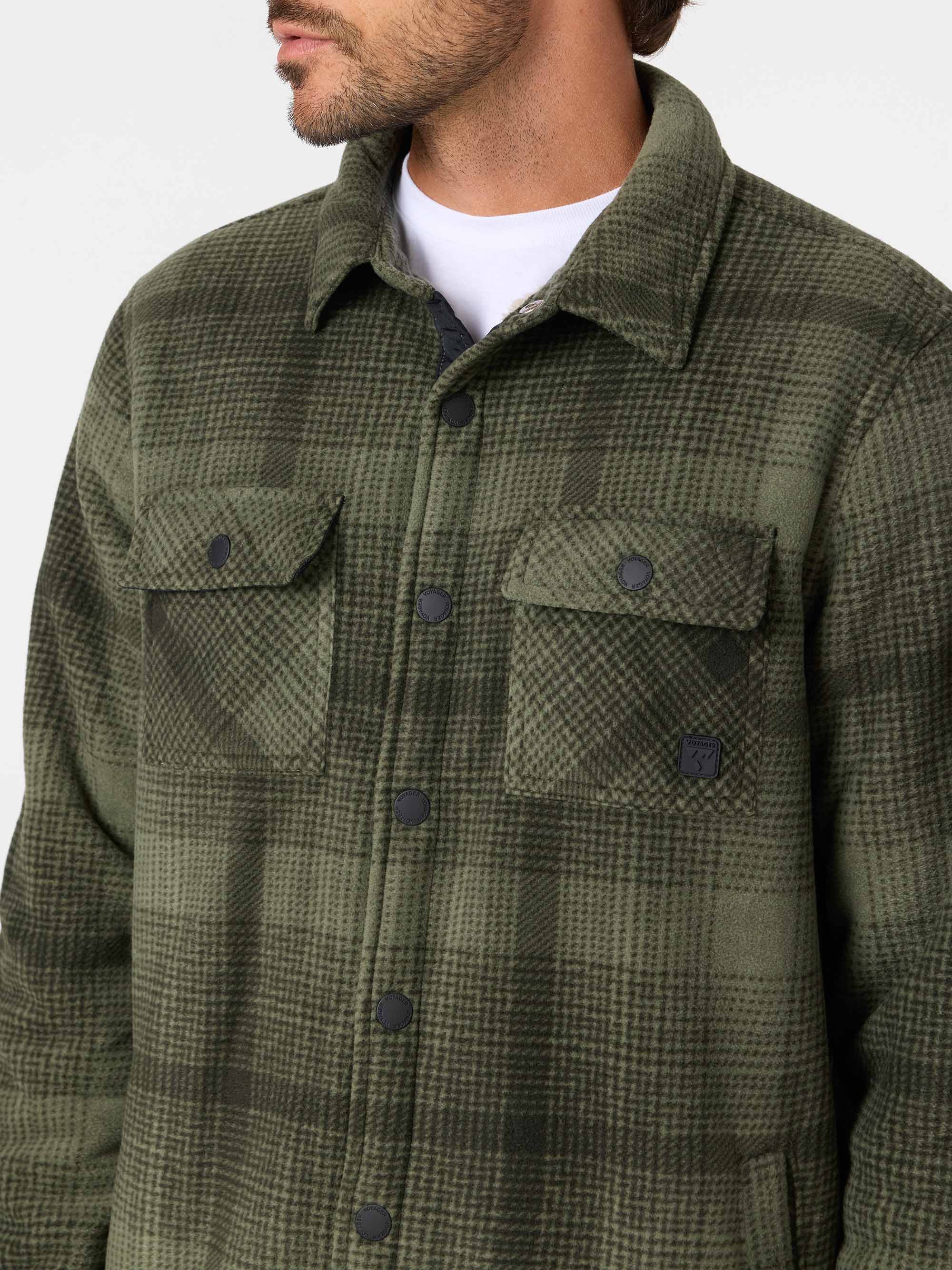 Keep the heat in and the cold out. This fleece button-up is high pile lined, has a front snap closure and relaxed fit.