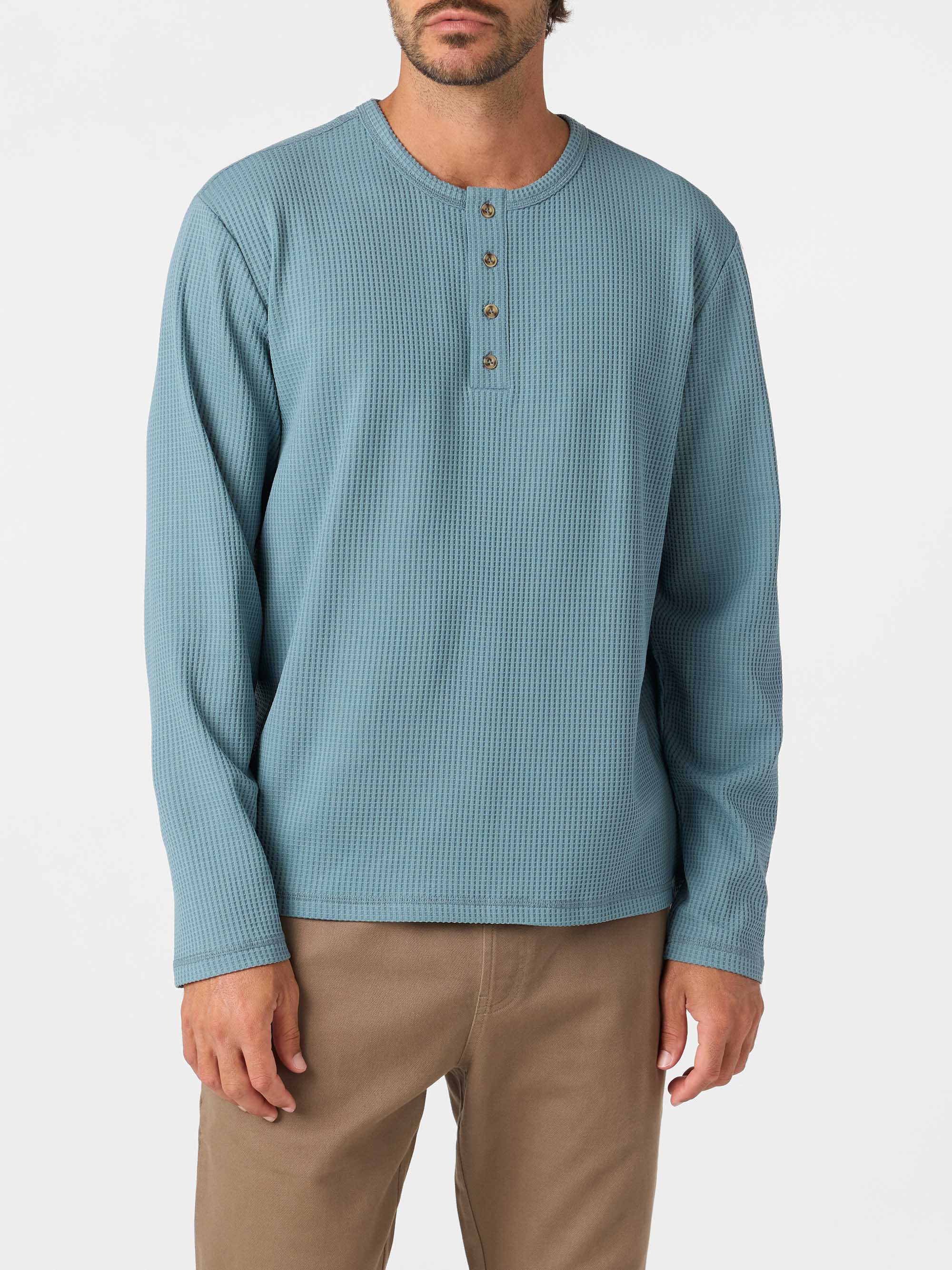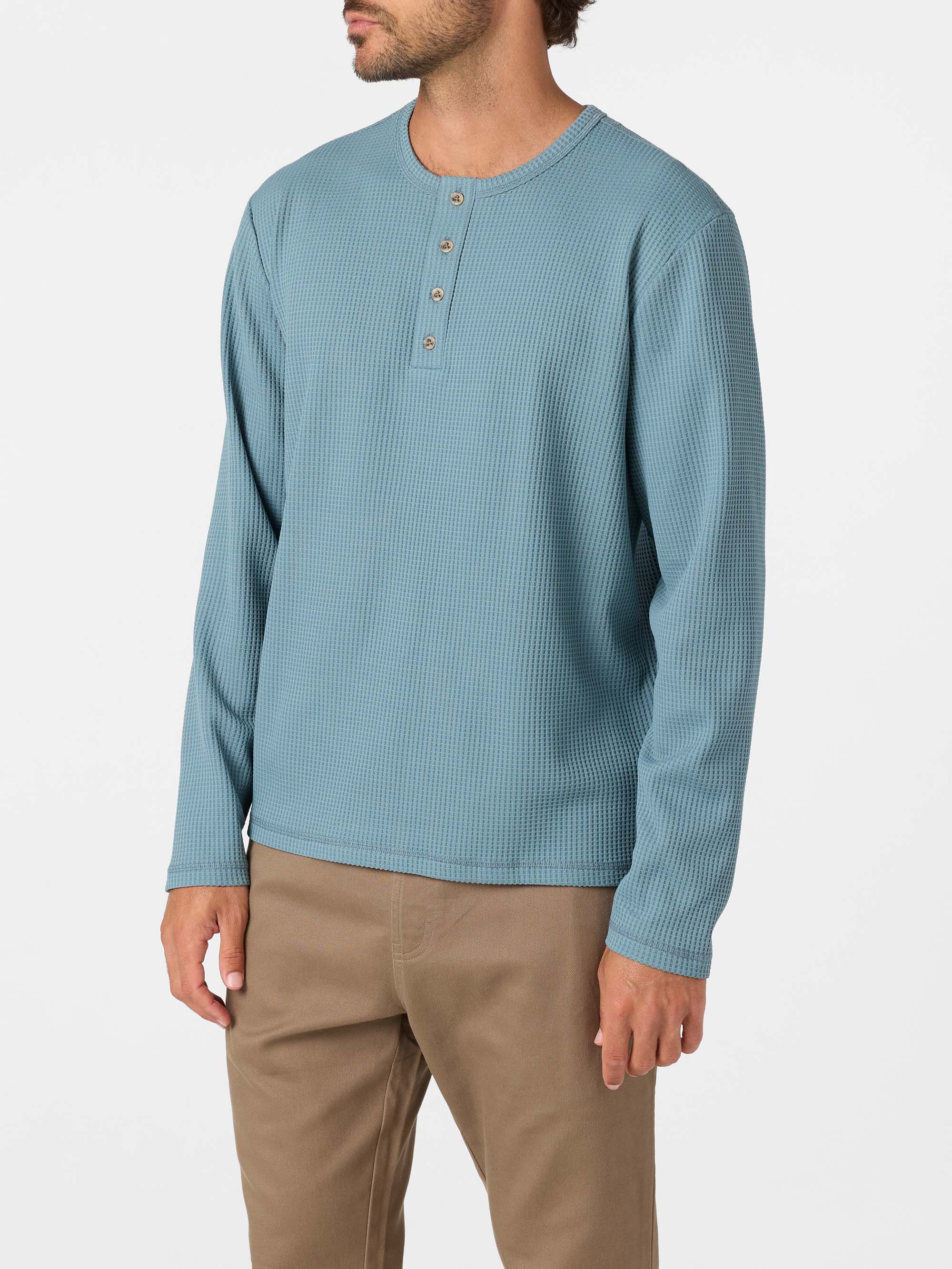 A relaxed fit long sleeve henley shirt that's great for camping or casual wear. It has a 4-button closure and premium poly thermal design.