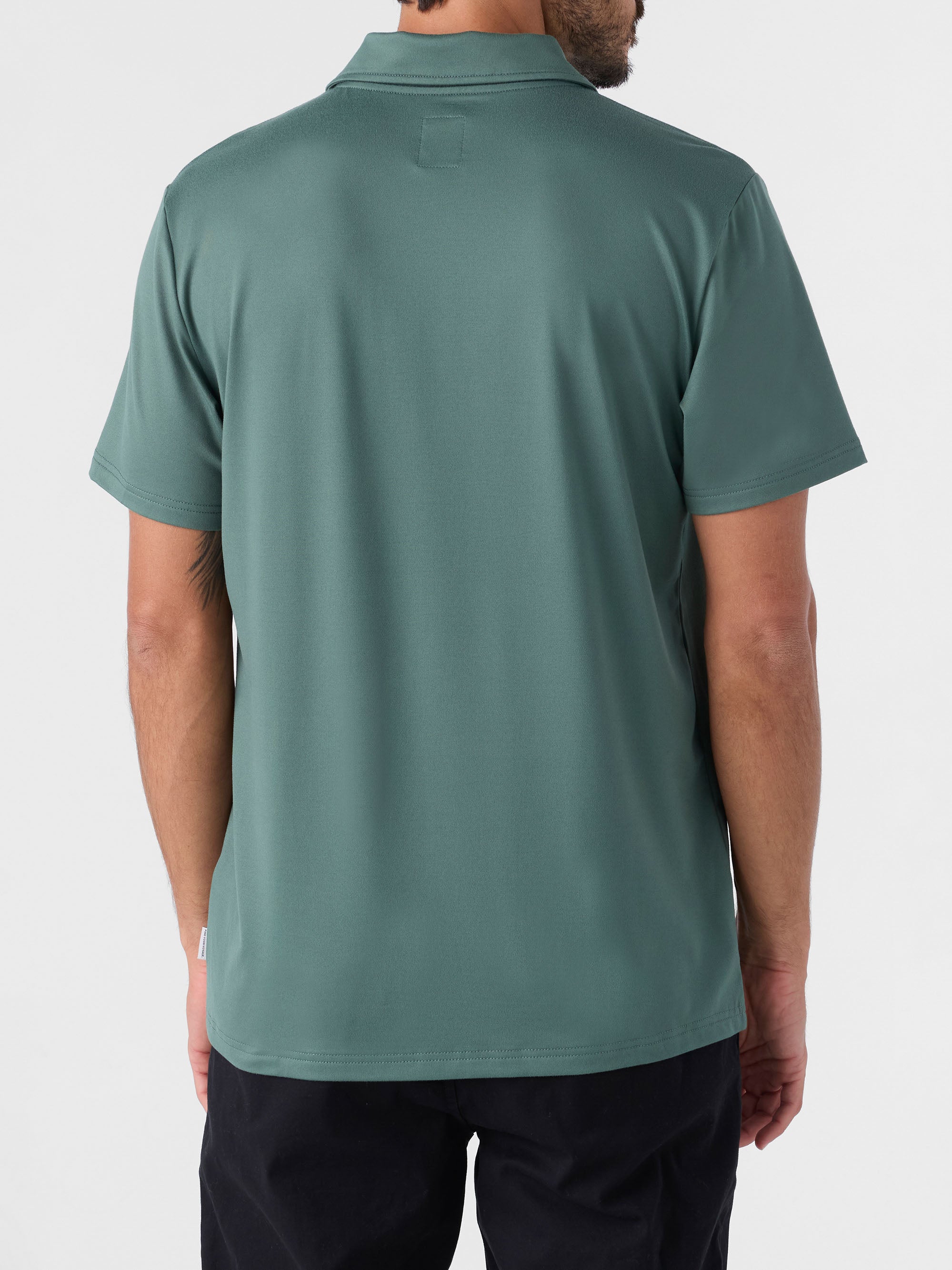 A performance polo shirt that's perfect for hiking, golfing or wearing around town. It features stretch fabrication, moisture wicking properties and UPF 50+ sun protection. The standard fit is relaxed in the body and sleeves.