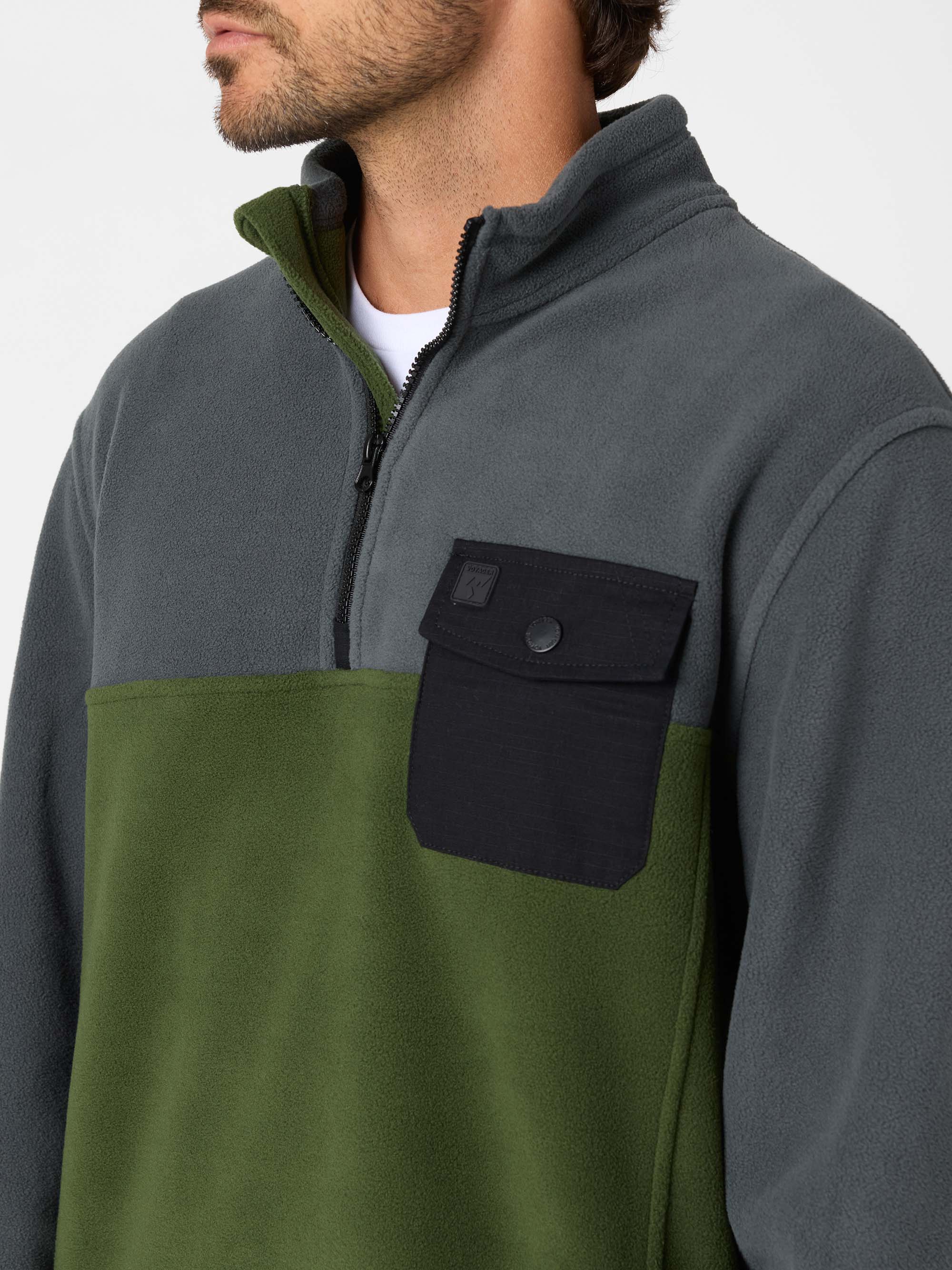 Hit the trail in this pullover fleece jacket, made to keep the heat in and the cold out. It has a front half-zip design, front patch pocket and super soft feel.