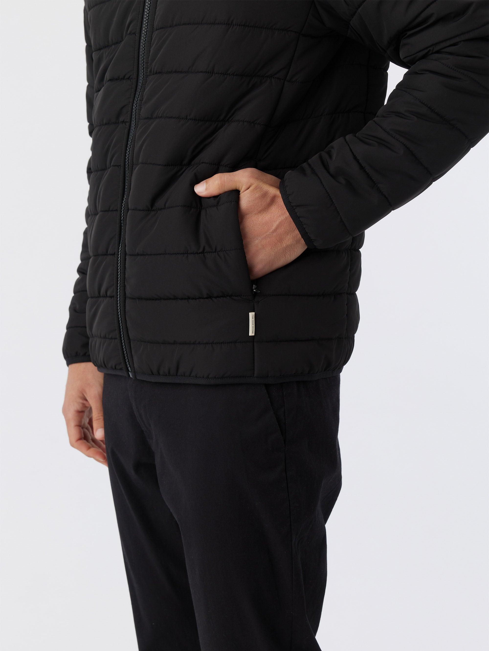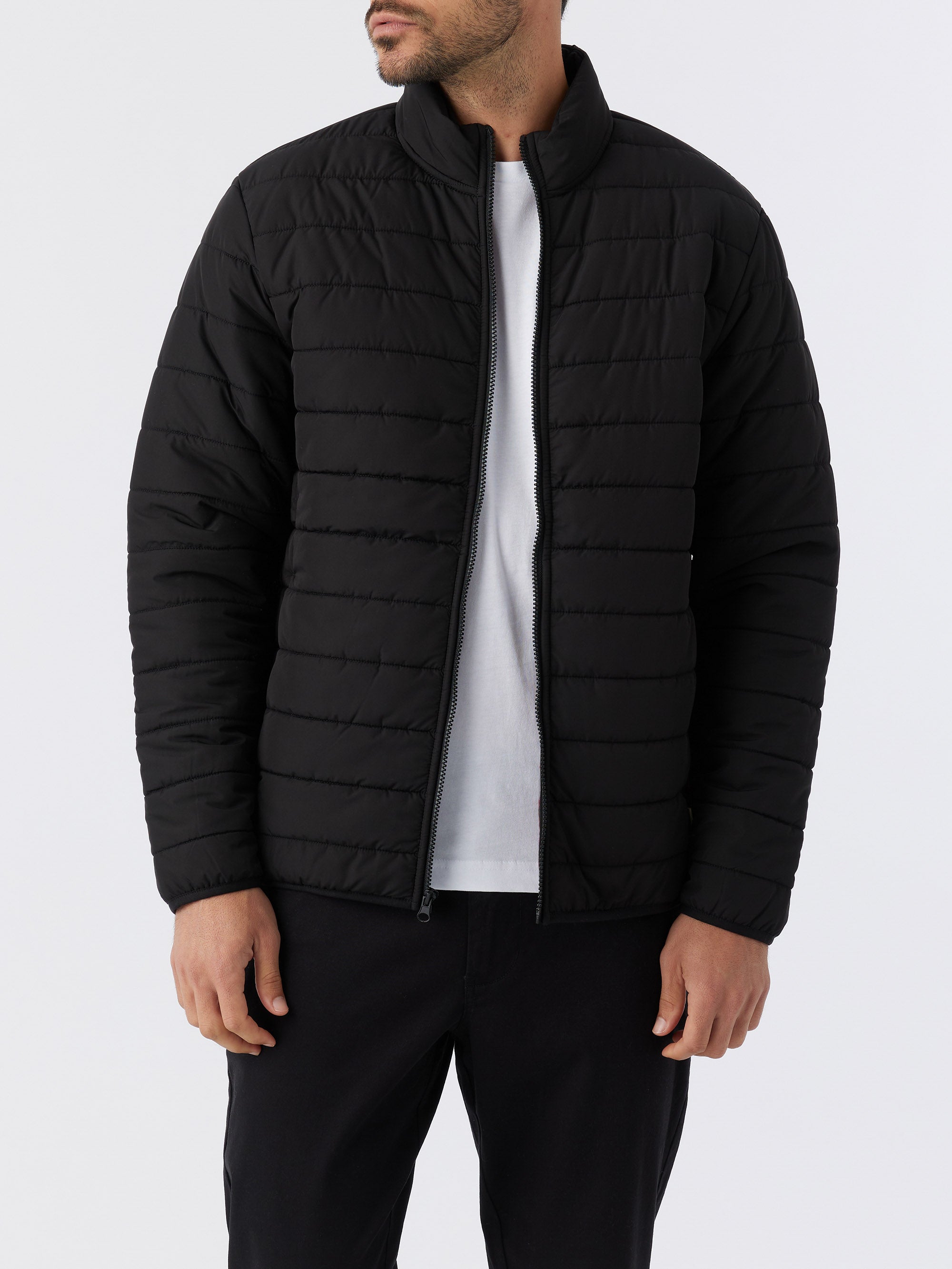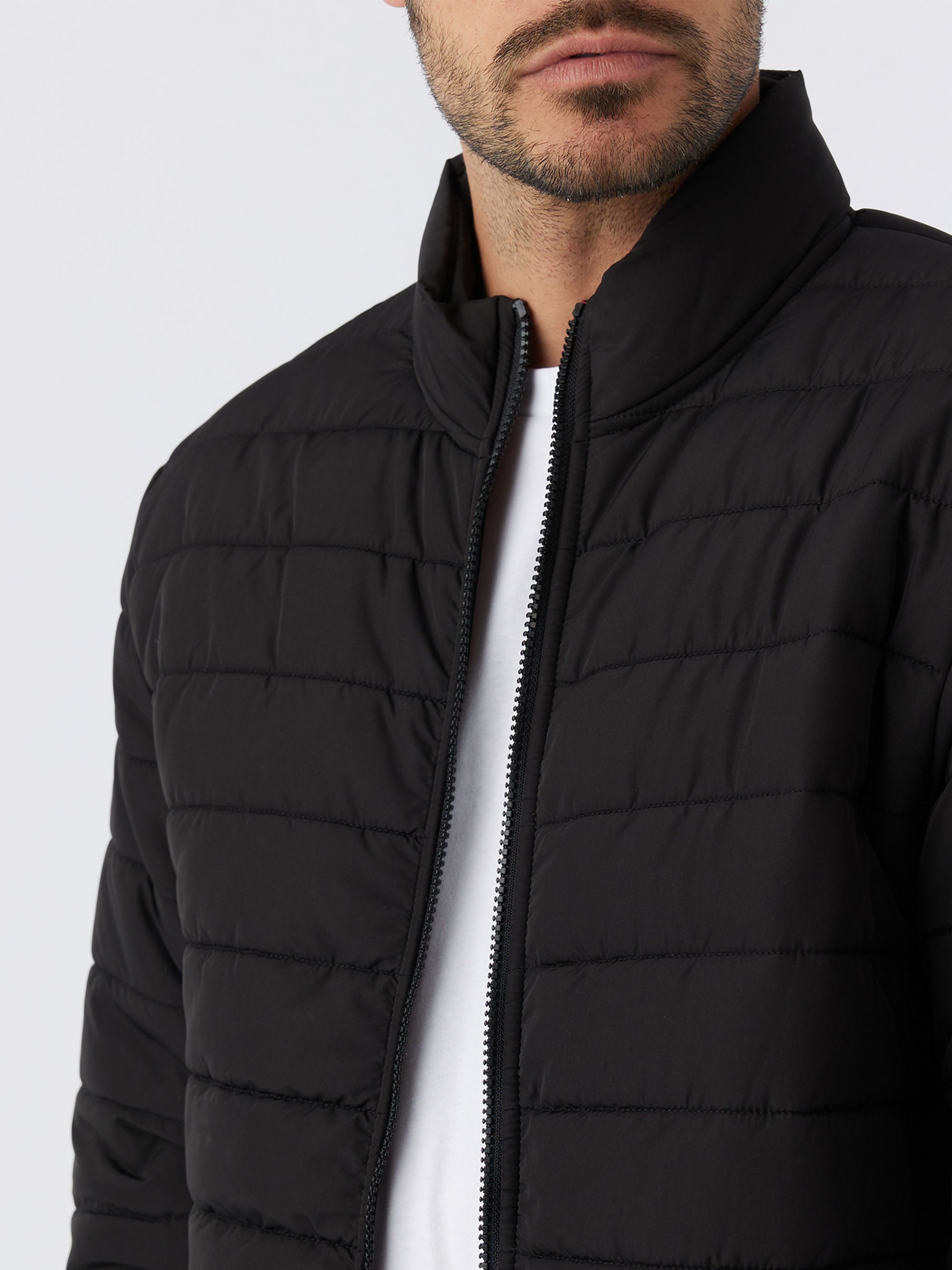 This quilted puff jacket is perfect for those colder, wet days. Featuring side hand pockets and water-resistant technology.