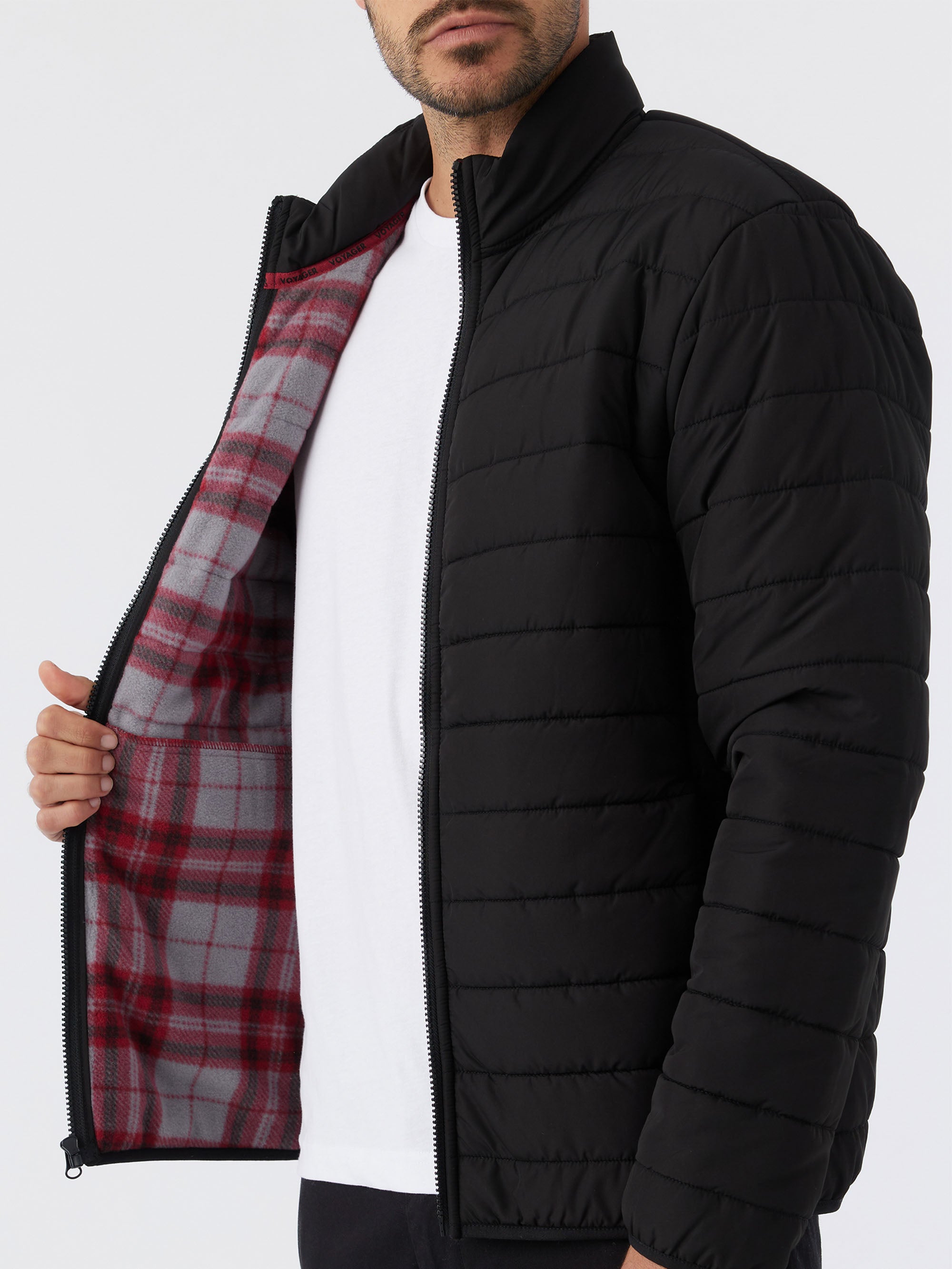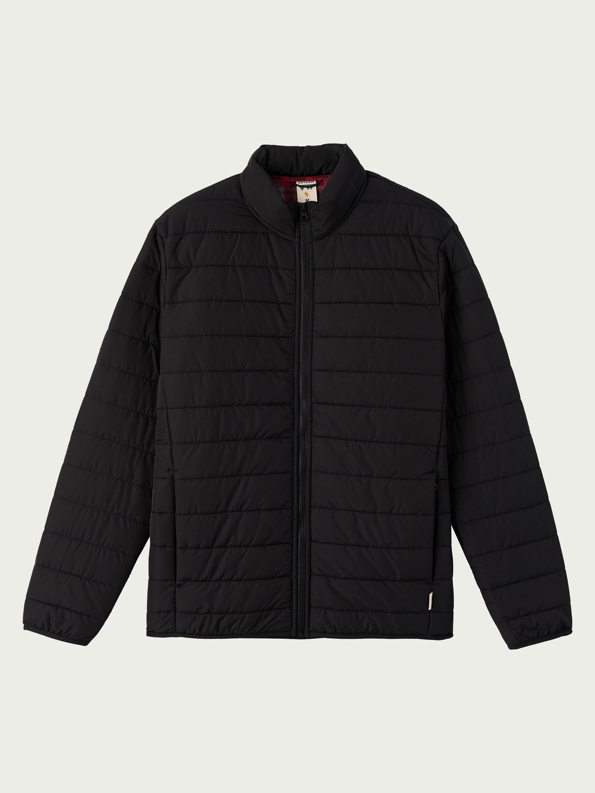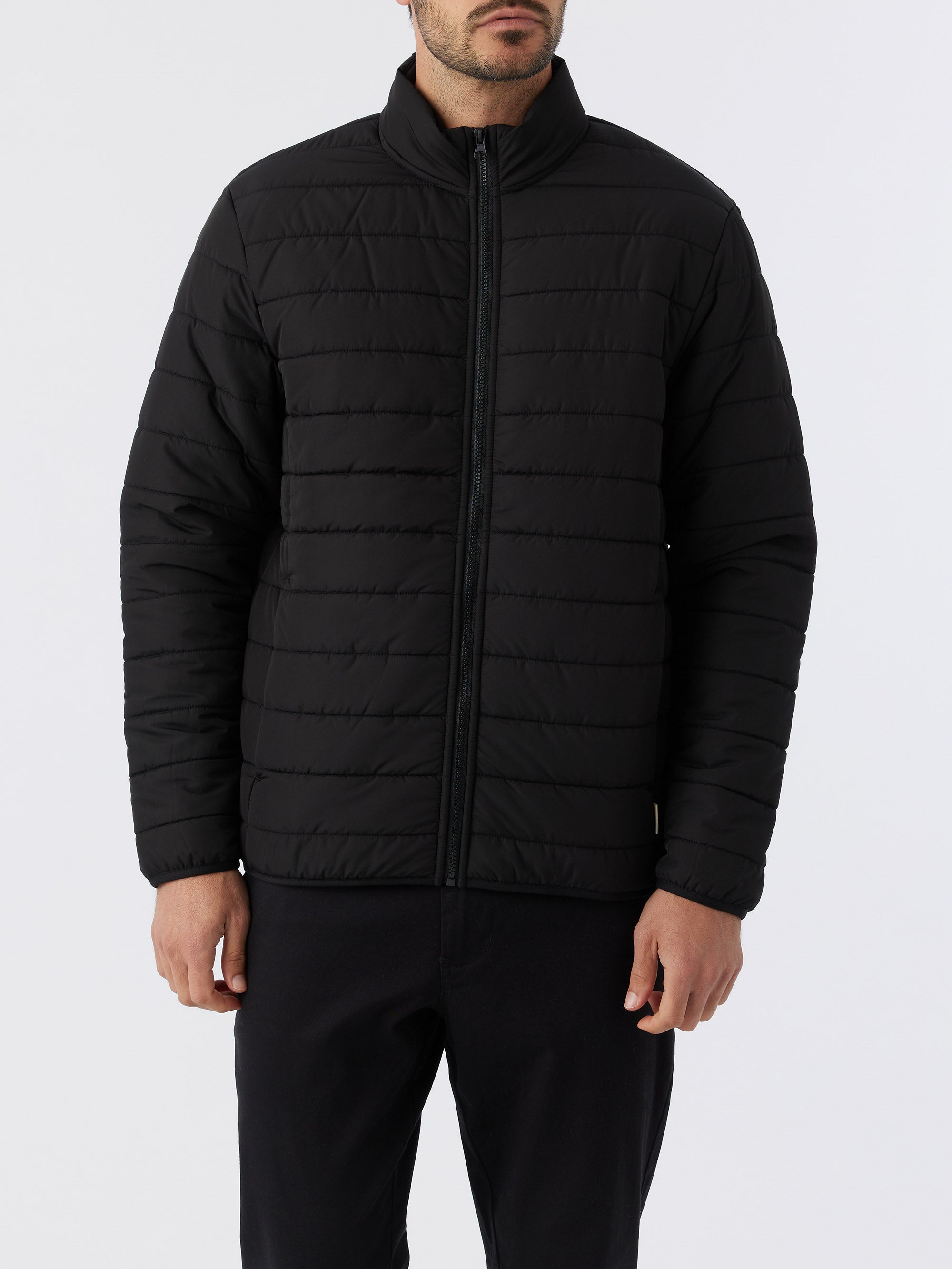 This quilted puff jacket is perfect for those colder, wet days. Featuring side hand pockets and water-resistant technology.