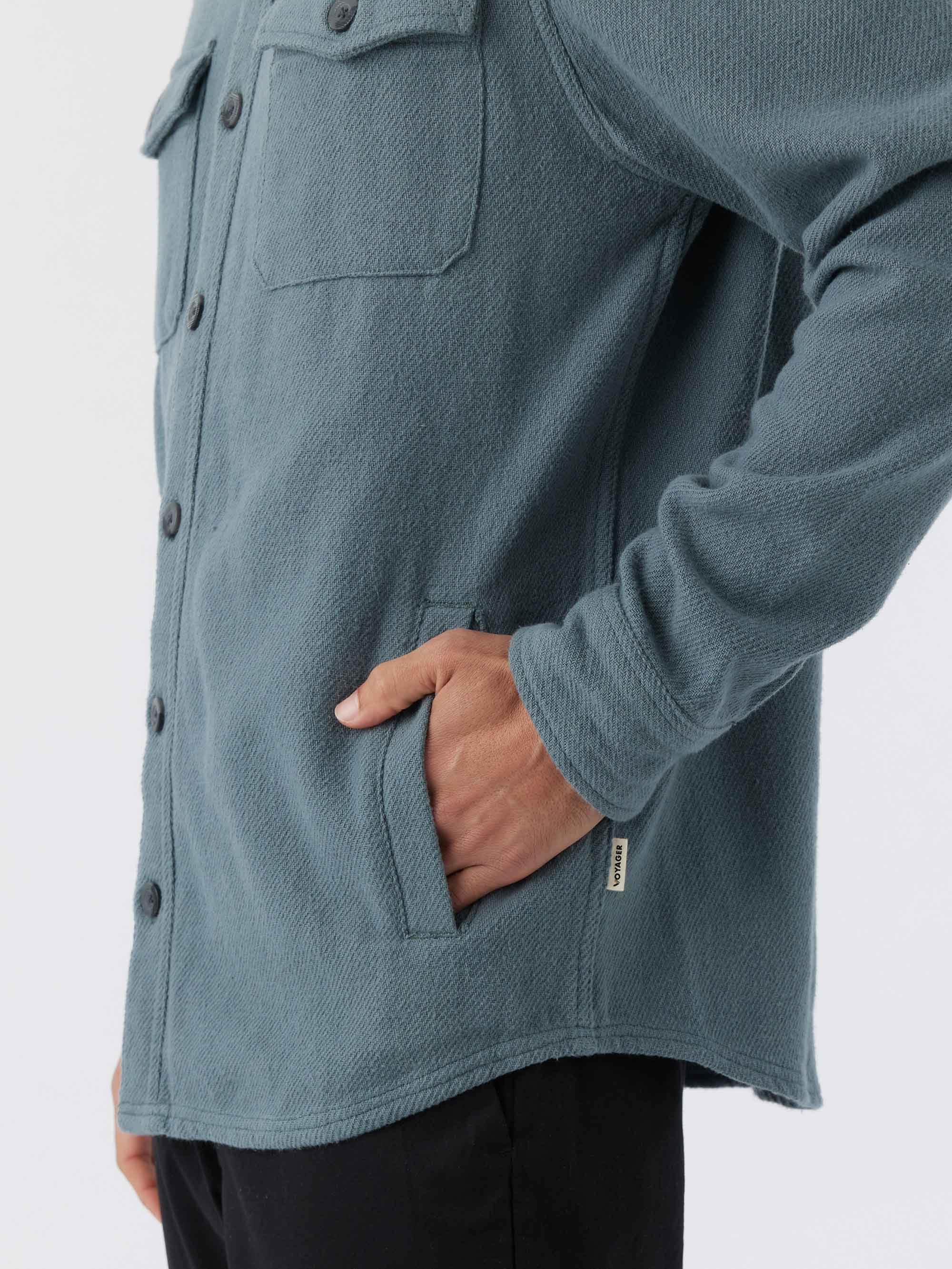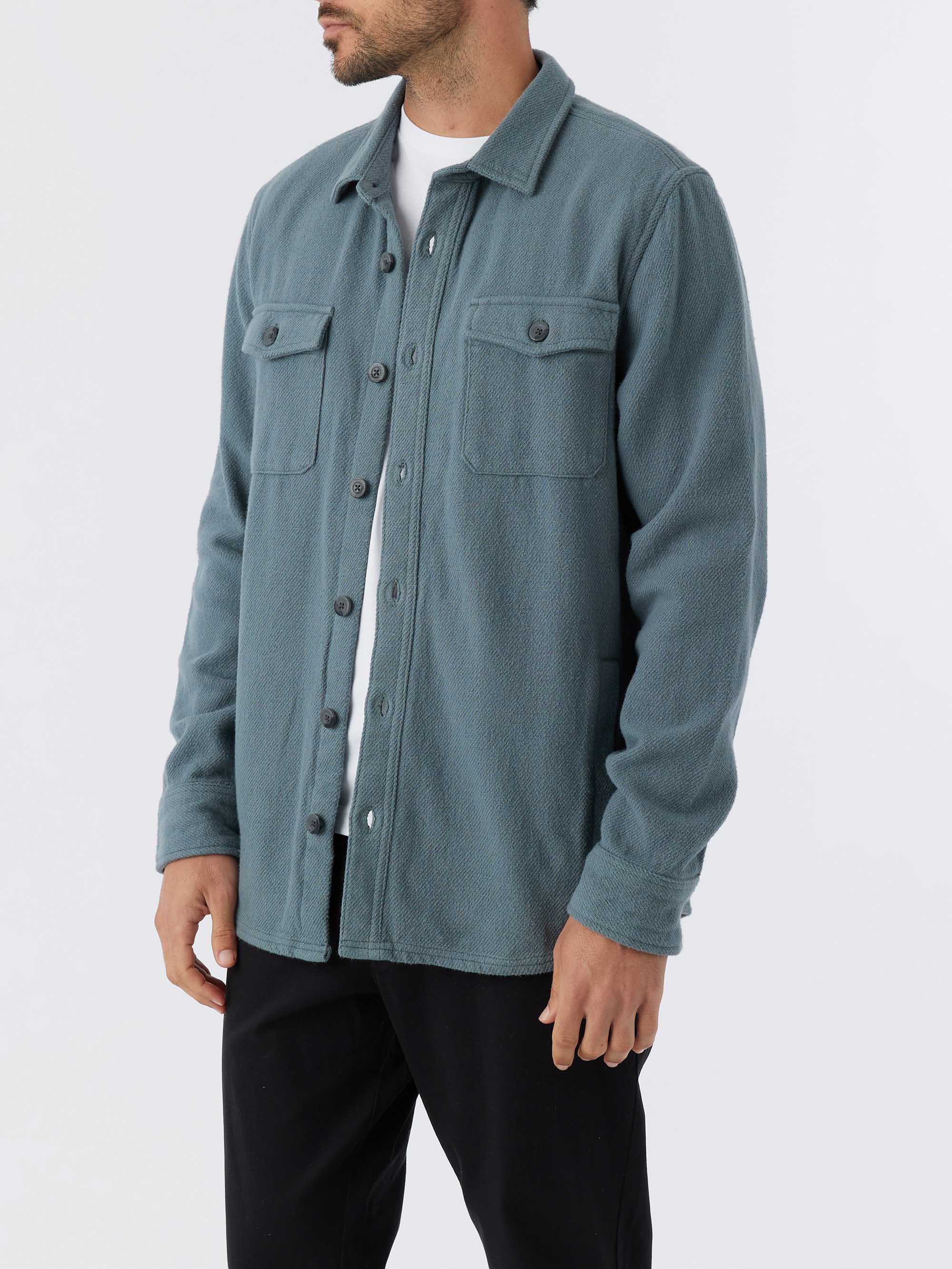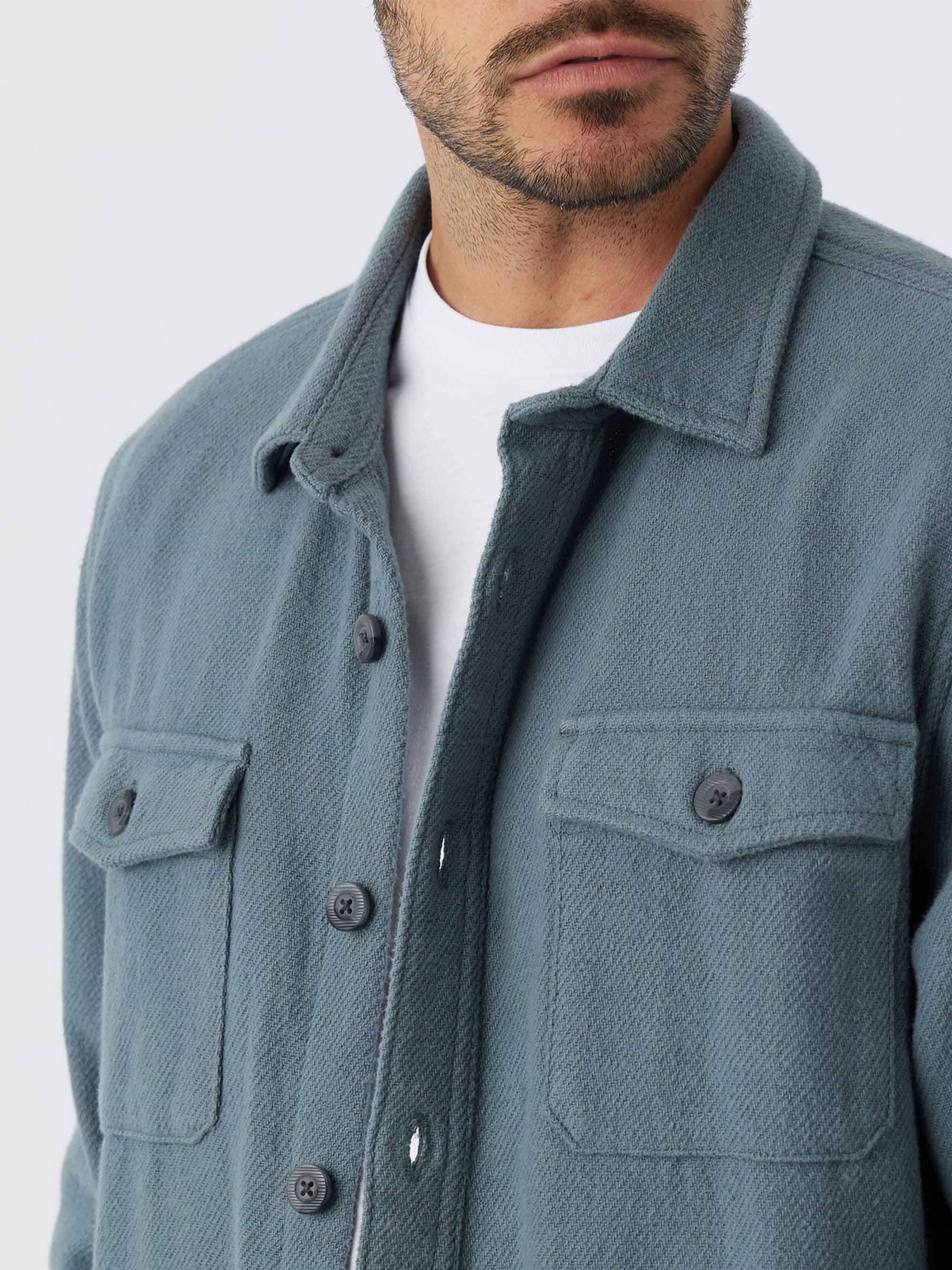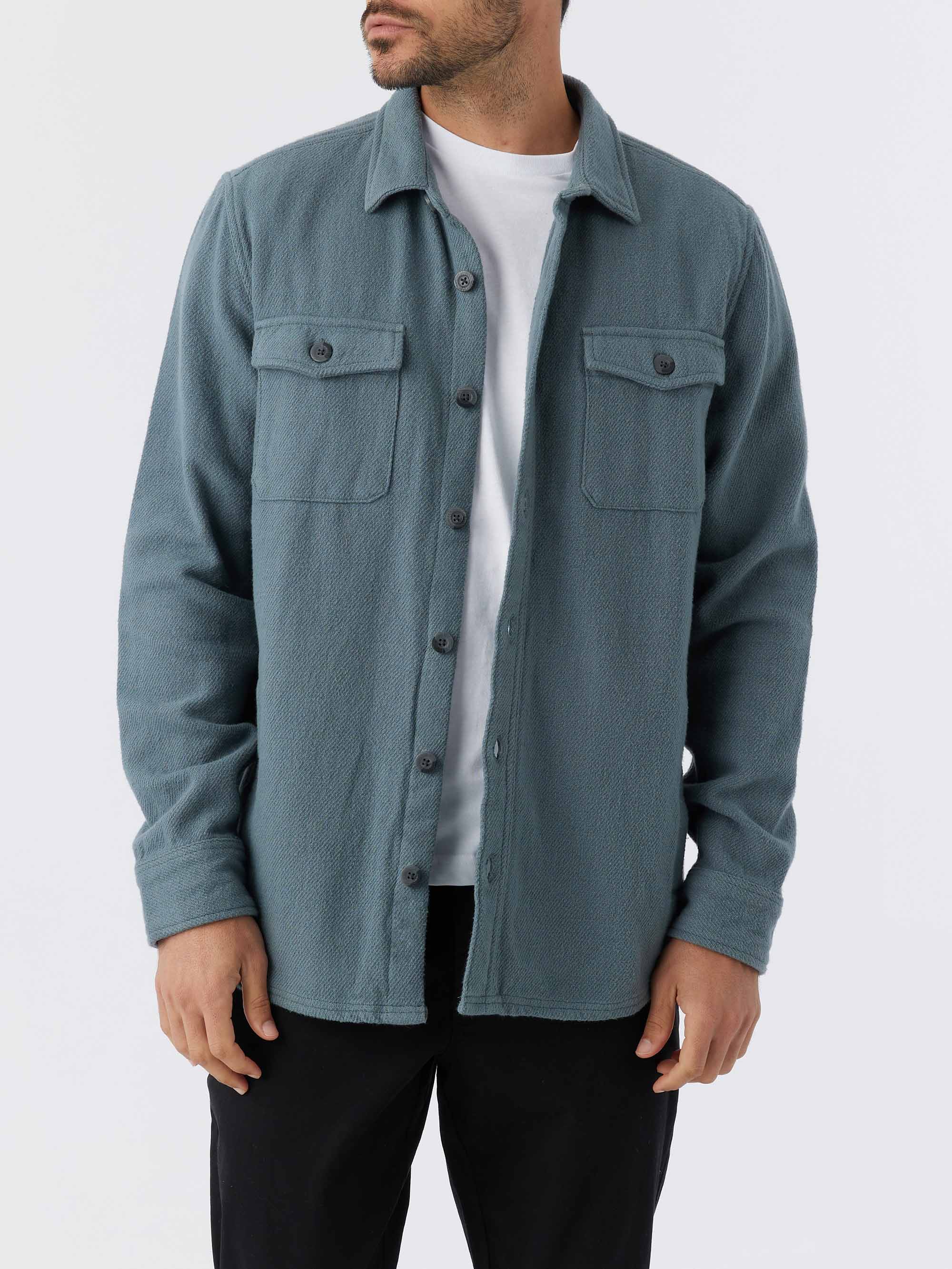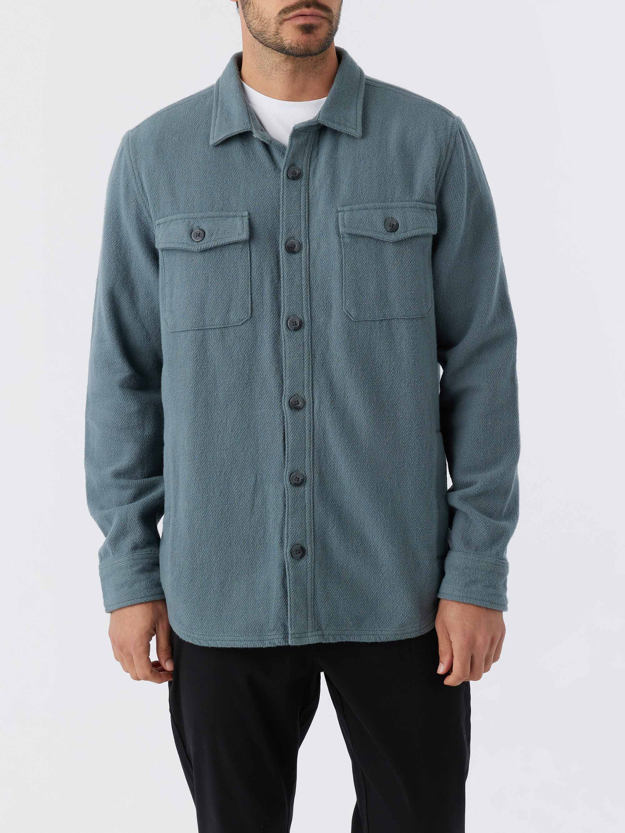 Keep the cold out with this woven overshirt, featuring a front button closure and relaxed fit in sleeves and body.